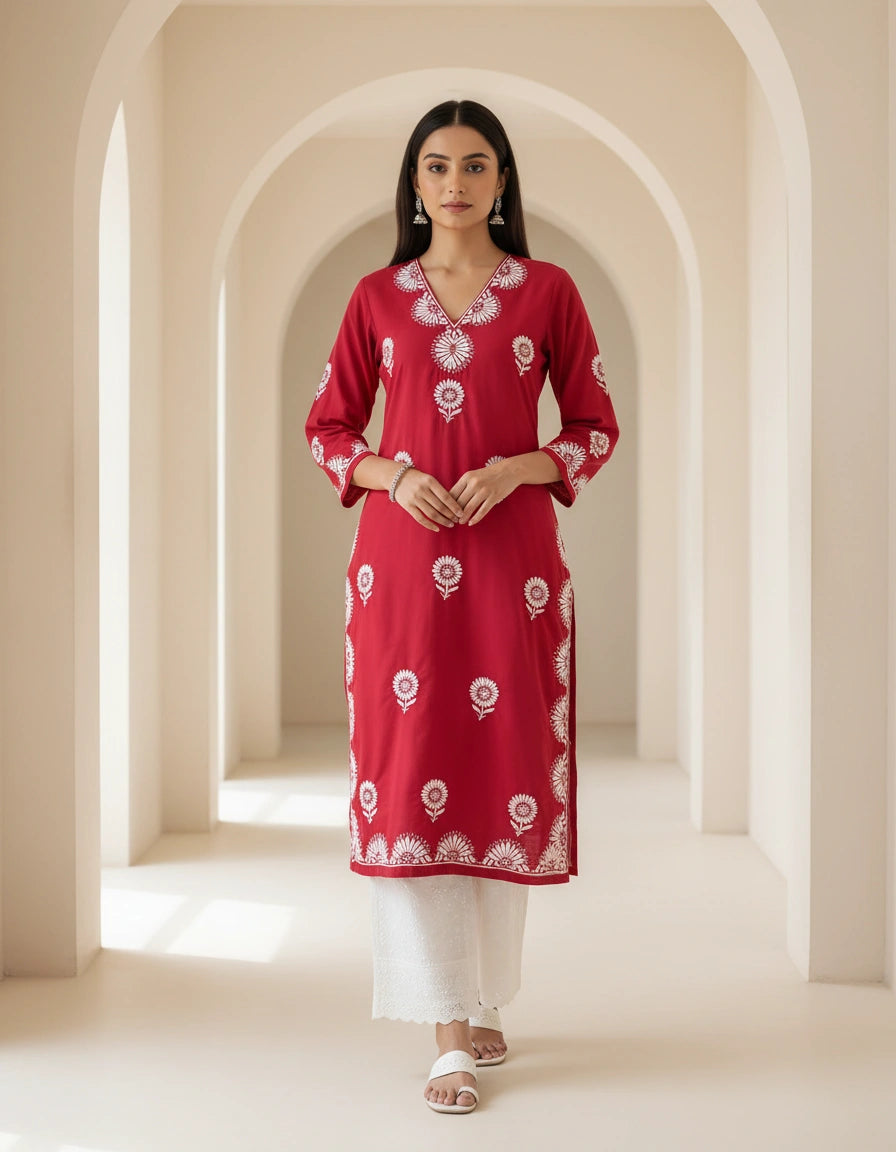 Maroon Modal Chikankari kurta