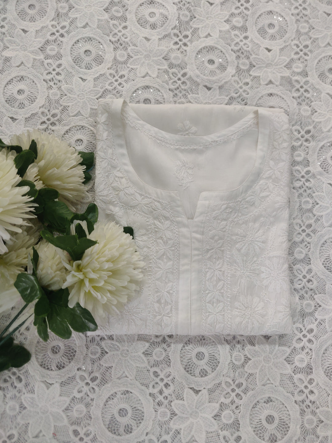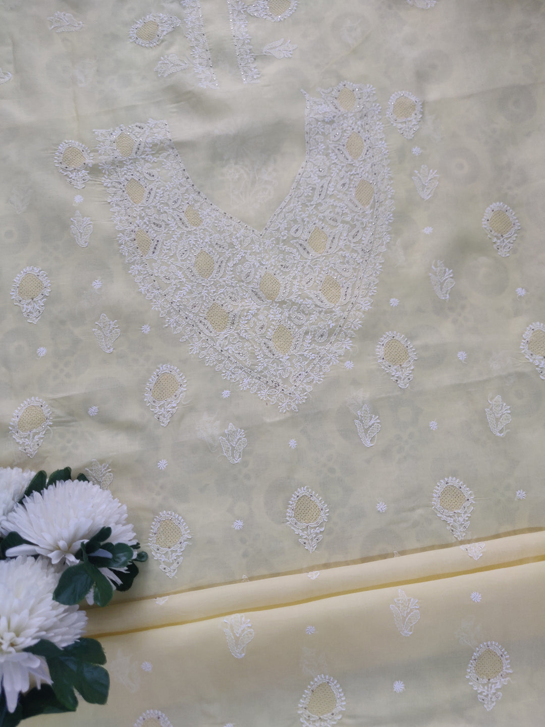 Beige Tissue Chanderi Chikankari kurta Dupatta Fabric