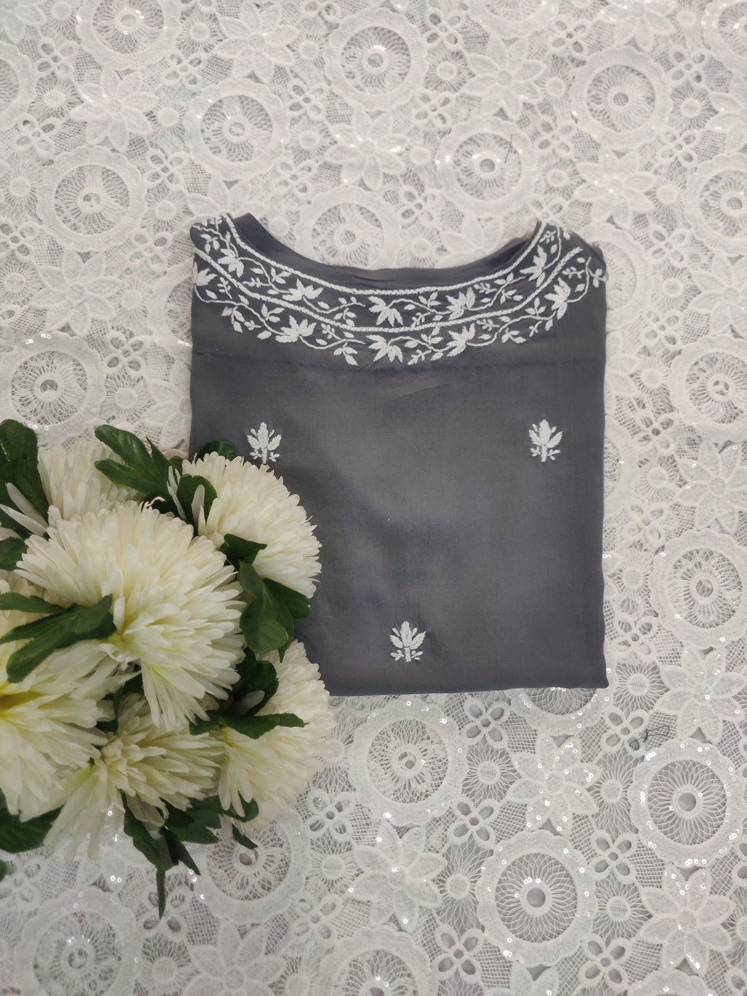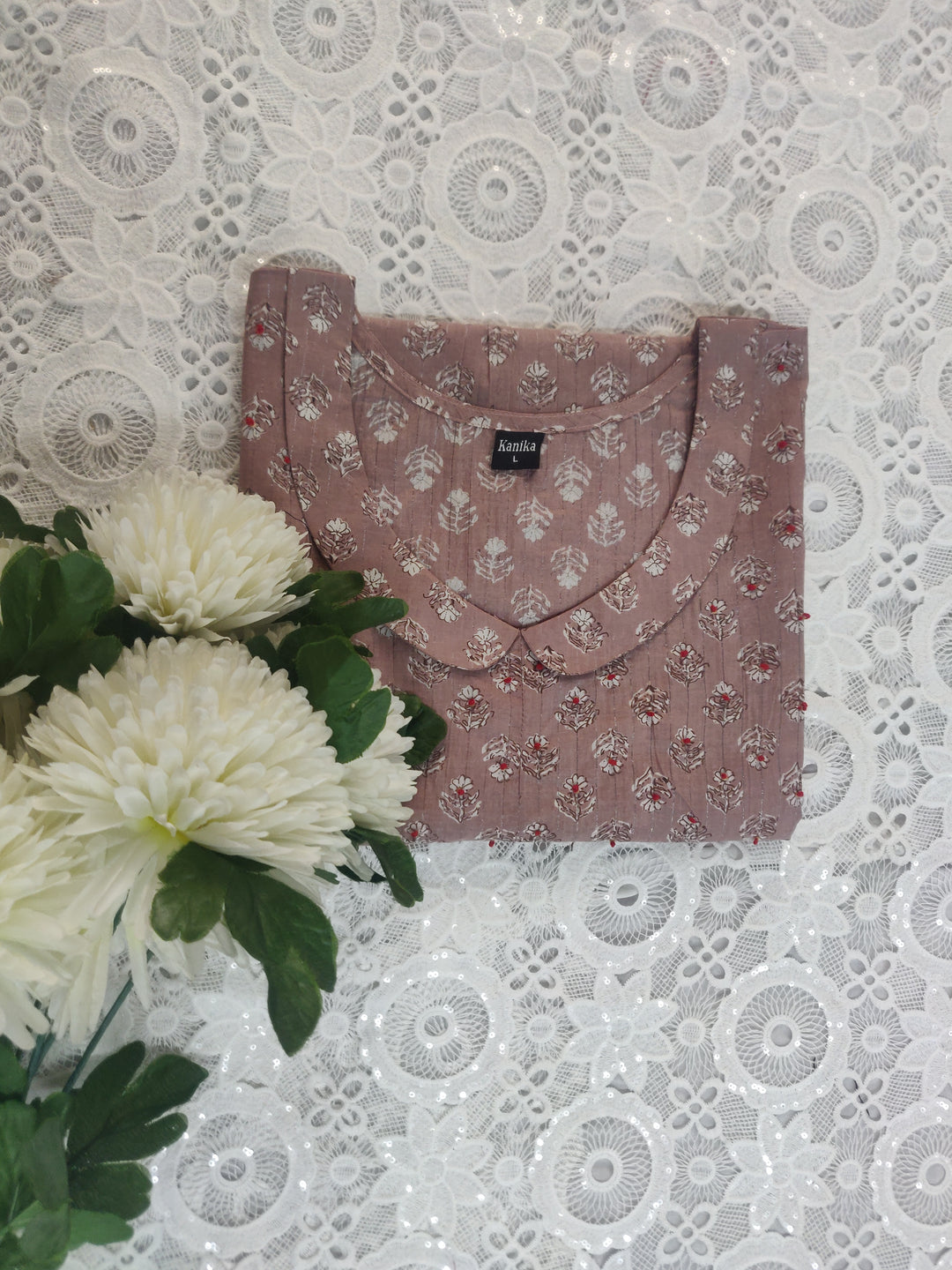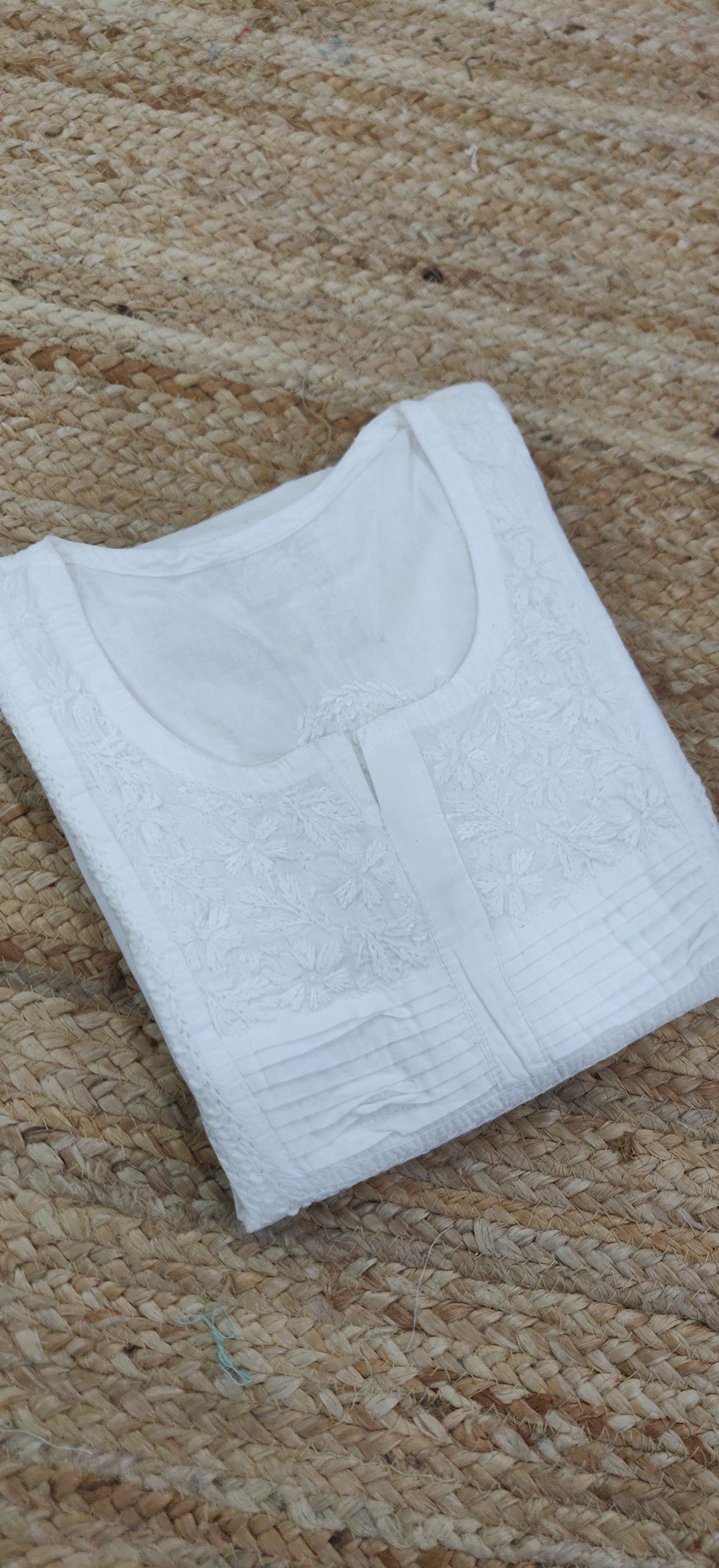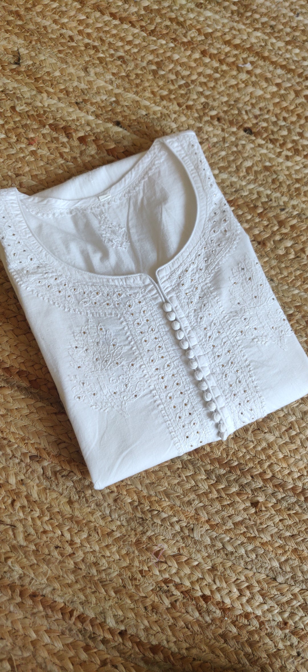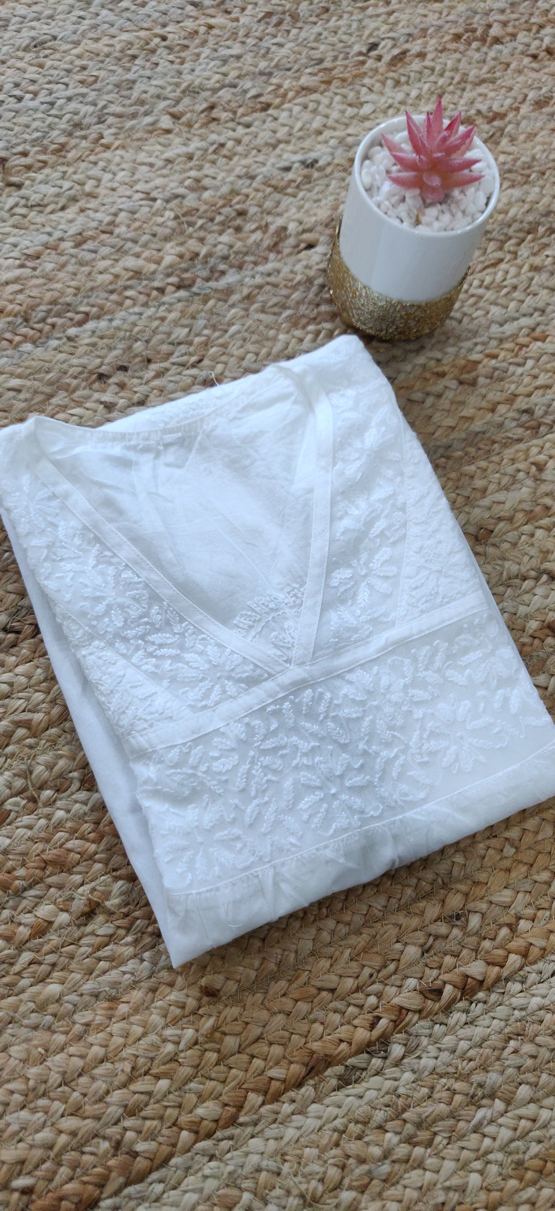 White Floral Printed Modal Cotton Kurta With Pant Set -Custom Made
