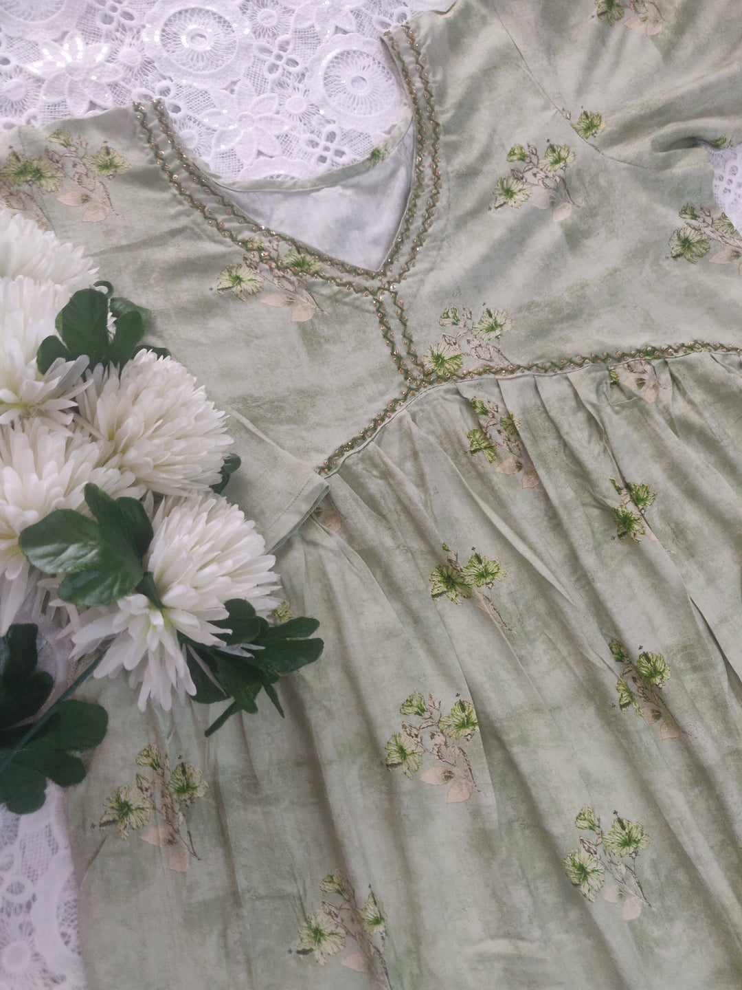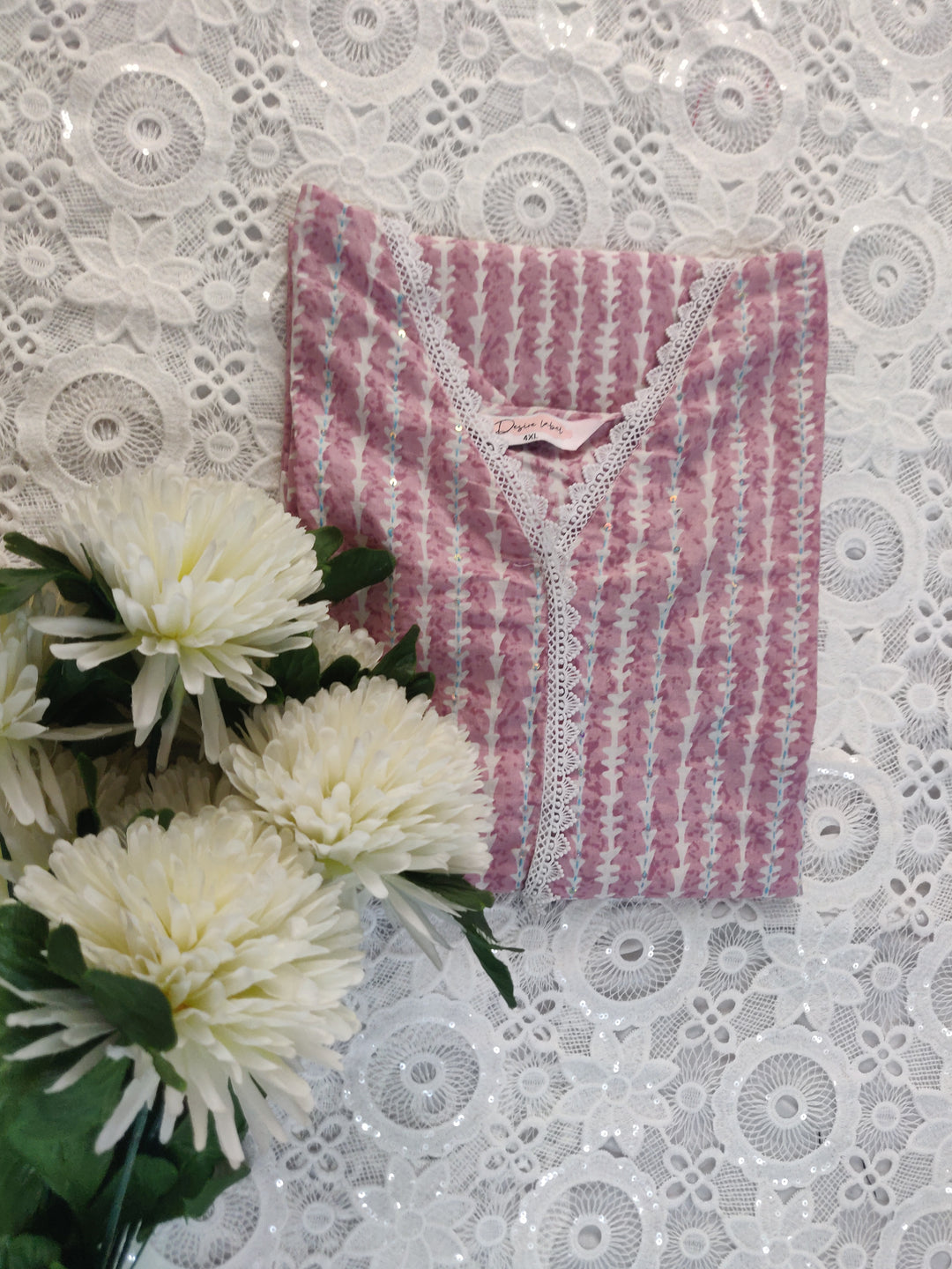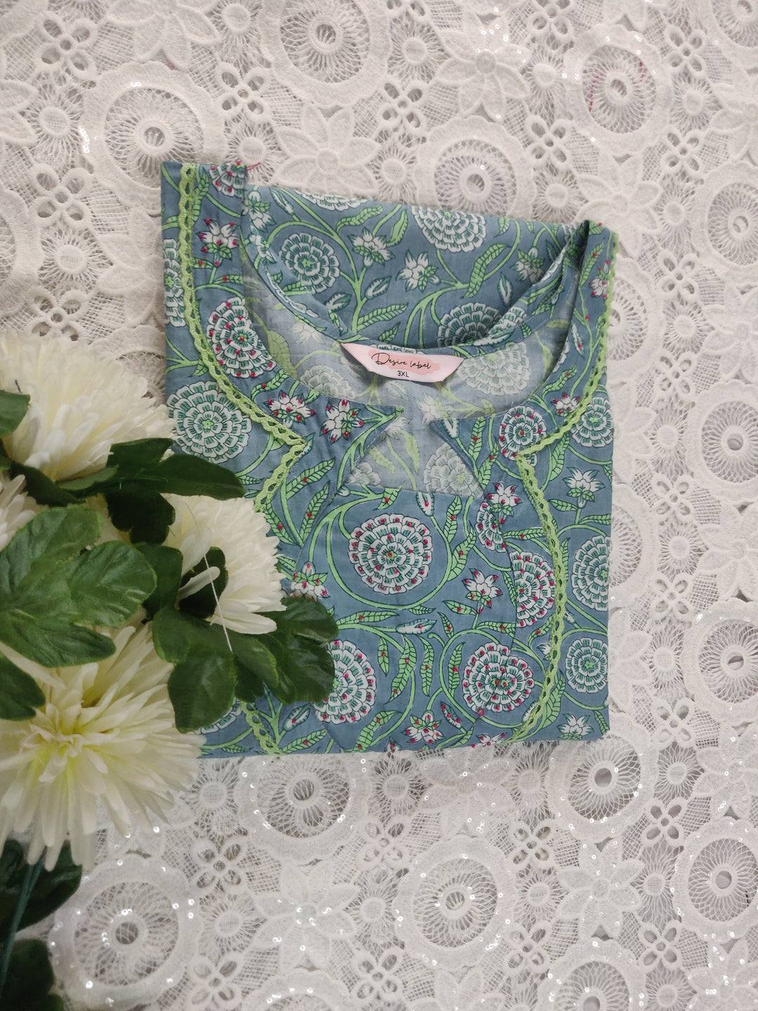 White And light blue Printed Modal Cotton Kurta With Pant Set -Custom Made