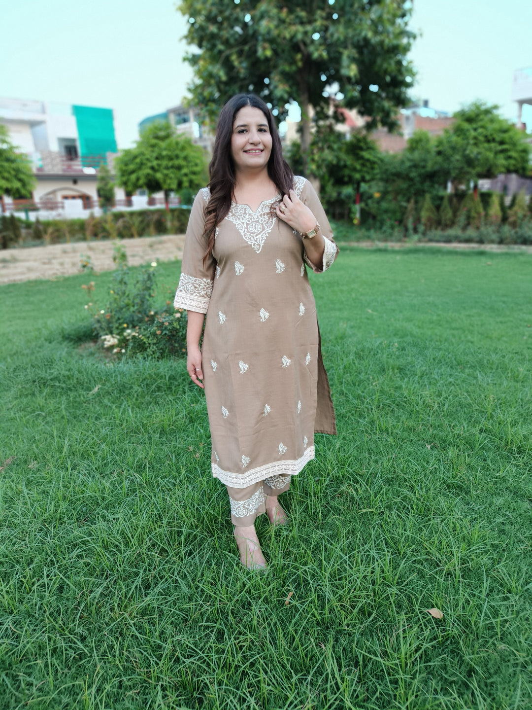 Lavender Rayon Chikankari Kurta with Pant Set-Custom Made