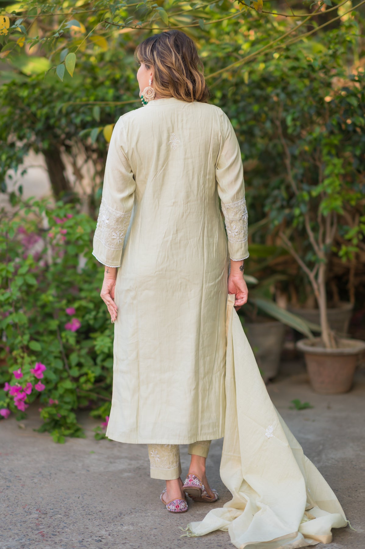 Mint Green Chanderi Chikankari Suit Set -Custom Made