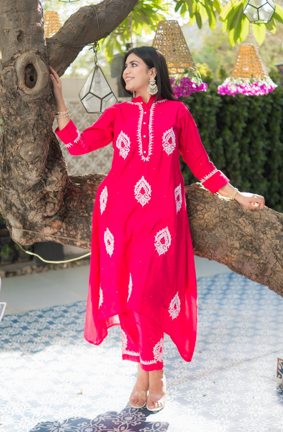 Rani Pink Chanderi Chikankari Set -Custom Made