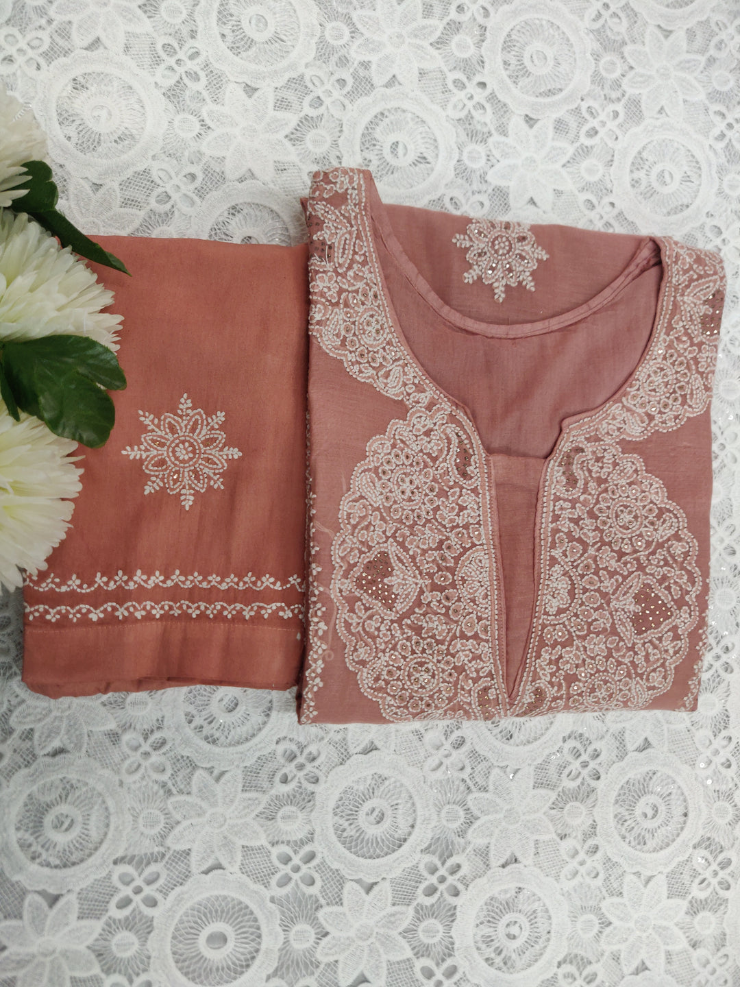 Pink Chanderi Chikankari Kurta Dupatta fabric