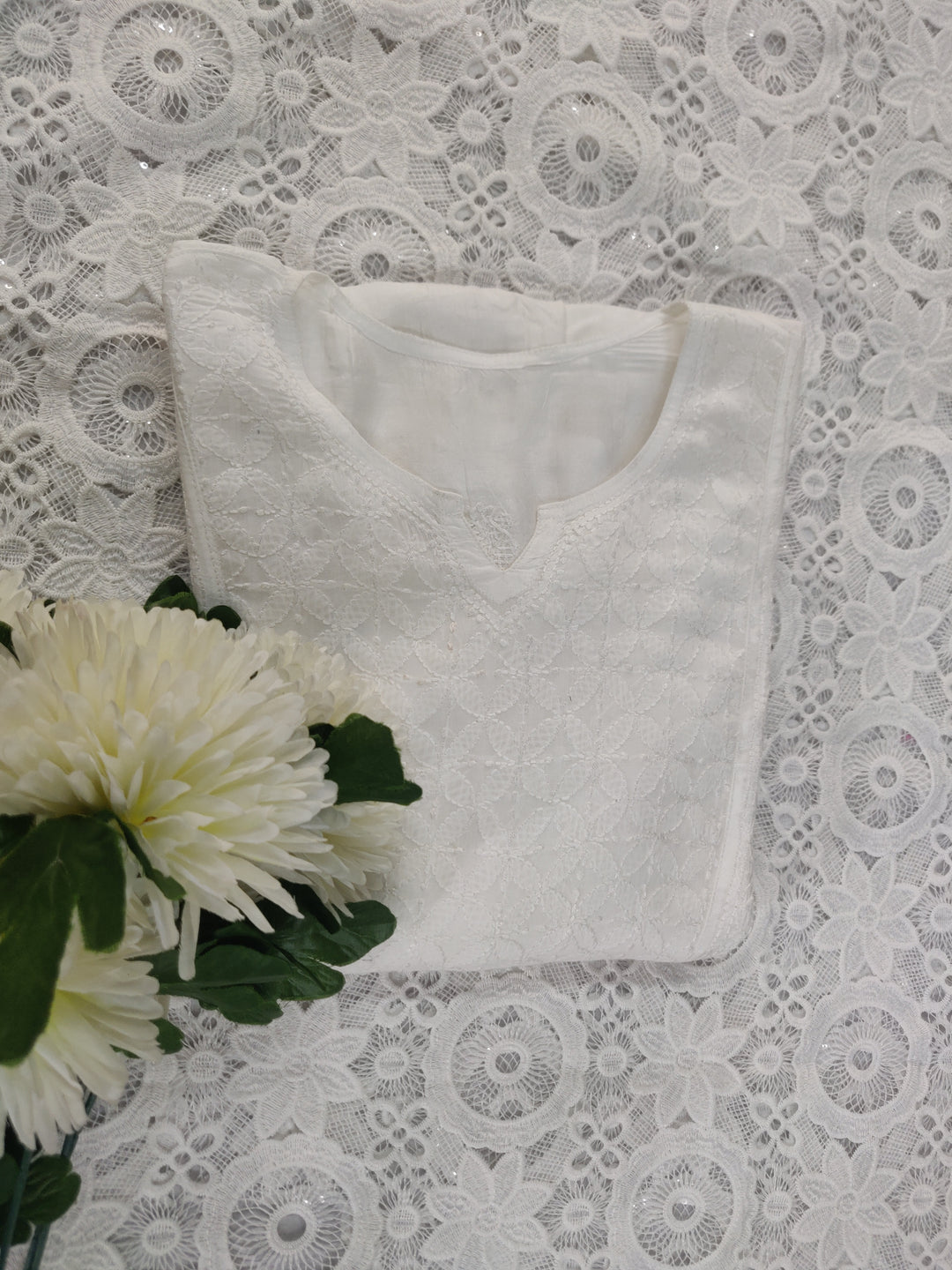 Light Yellow Chanderi Chikankari Suit Set-custom Made