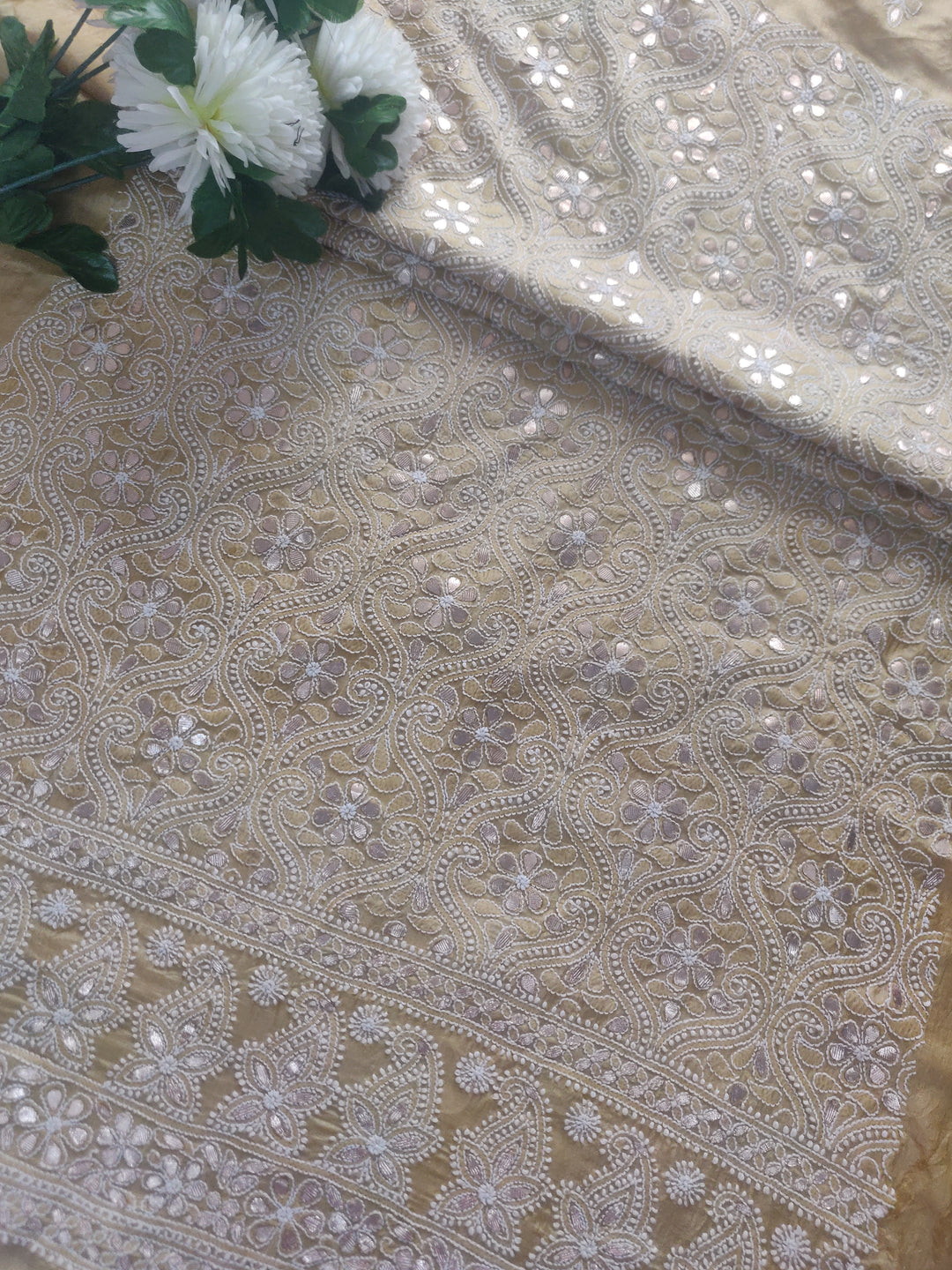 Beige Tissue Chanderi Chikankari kurta Dupatta Fabric