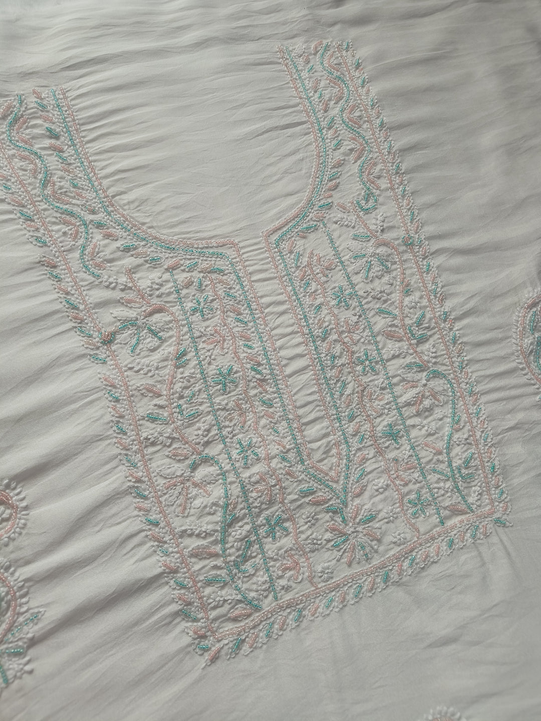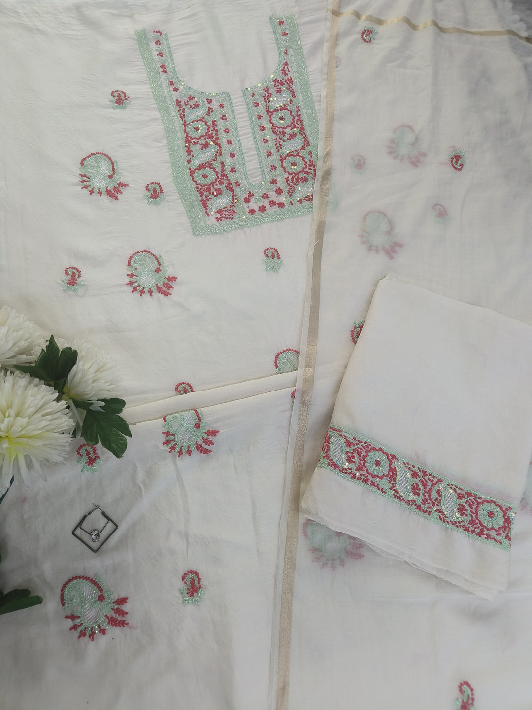 Light Pista Green Chanderi Chikankari Suit Fabric