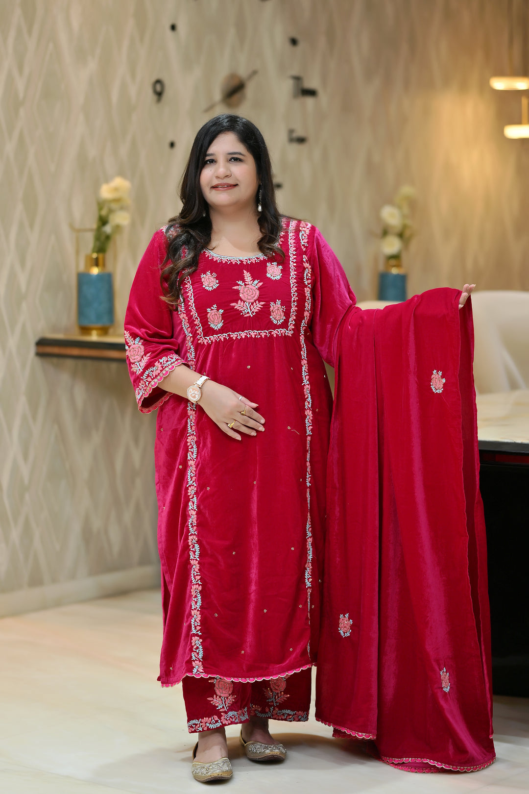 Maroon Velvet Chikankari Suit Set - Custom Made
