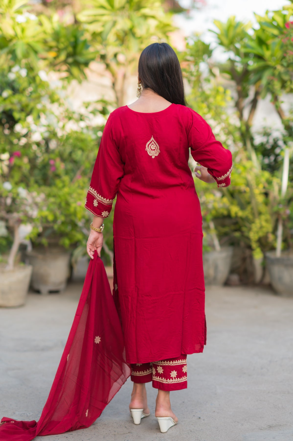 Maroon Rayon Chikankari Suit Set -Custom Made