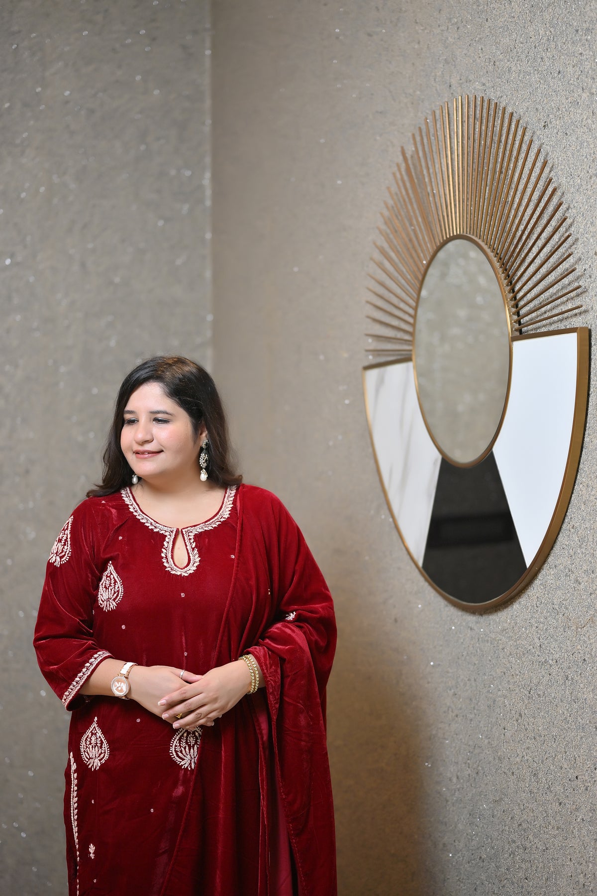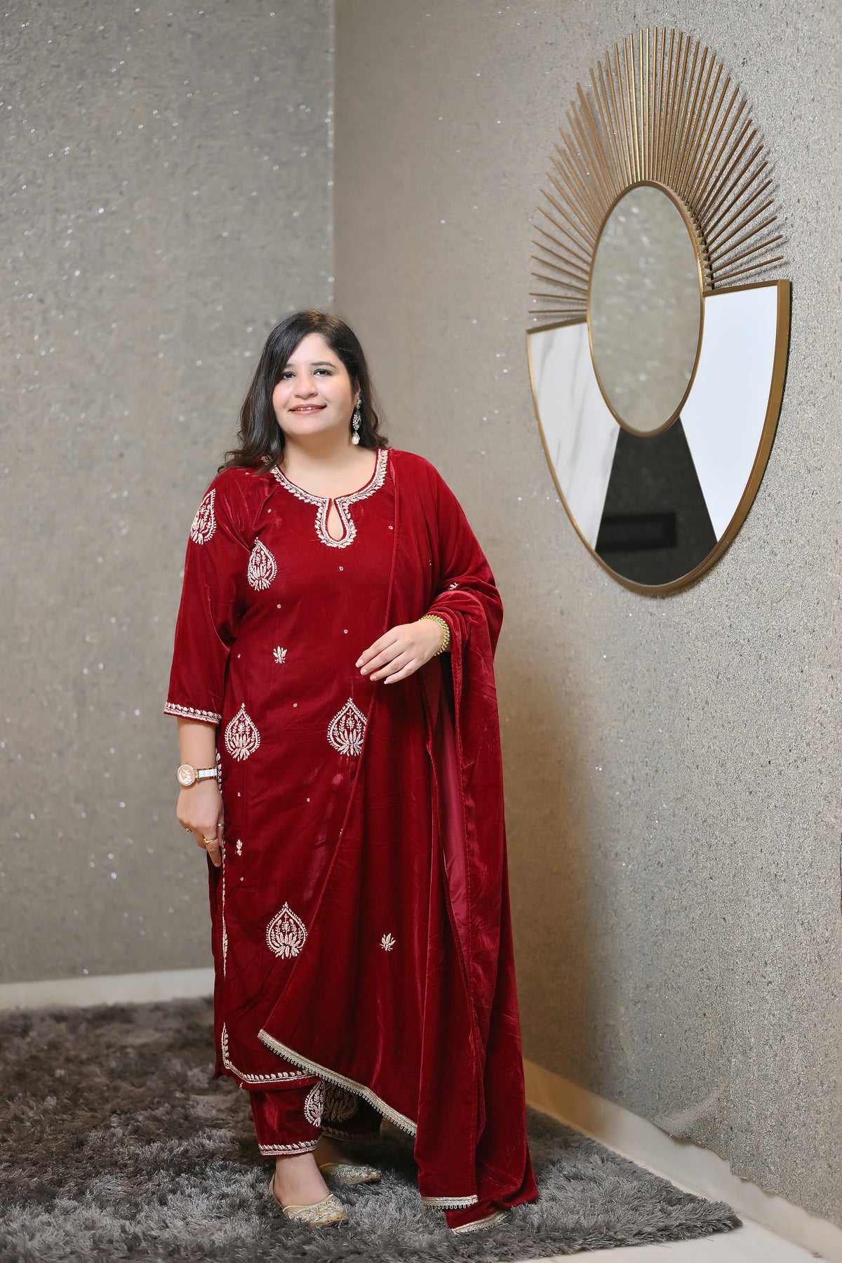 Maroon Velvet Chikankari Suit Set - Custom Made