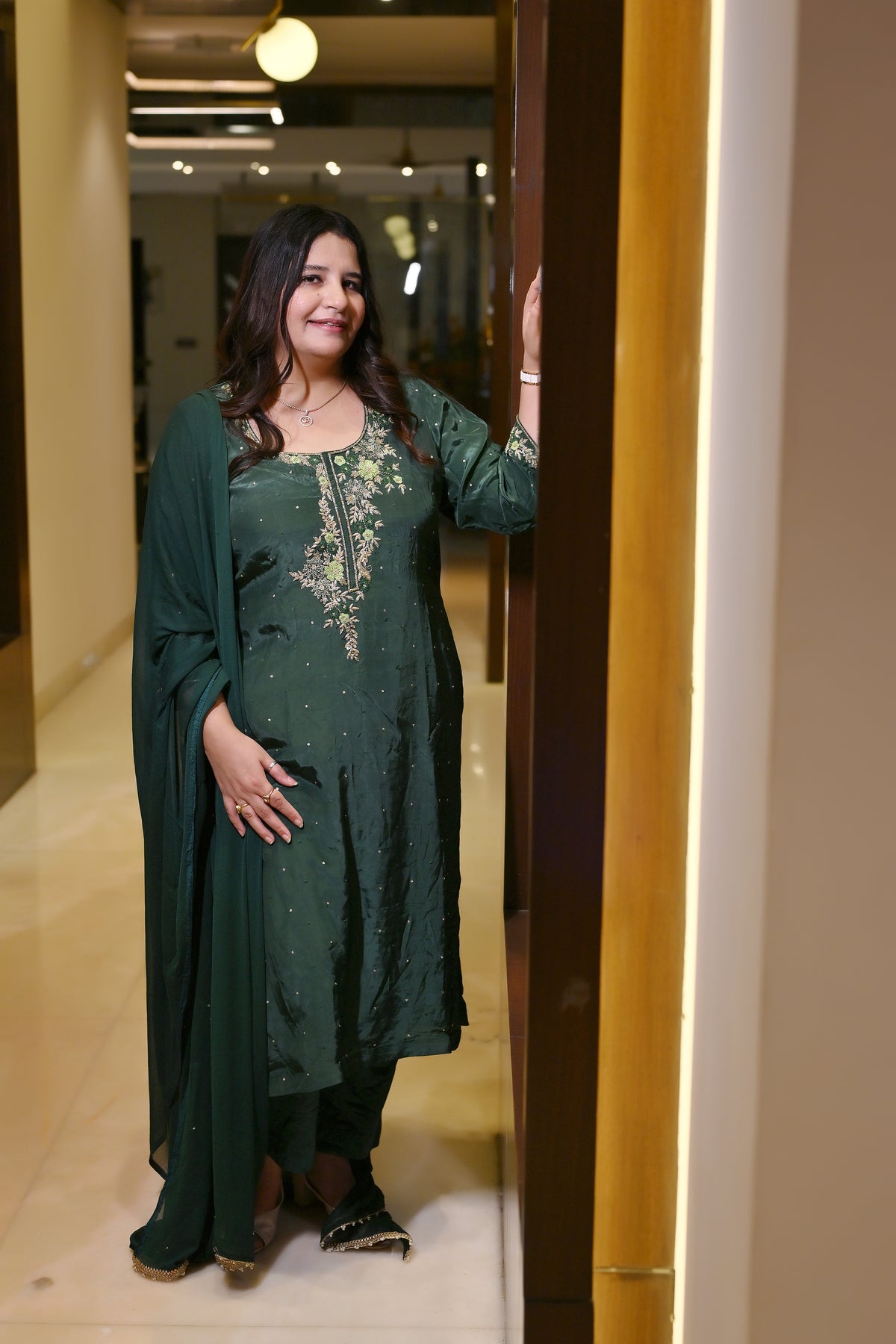 Dark Green Hand Embroidered Suit Set-Custom Made
