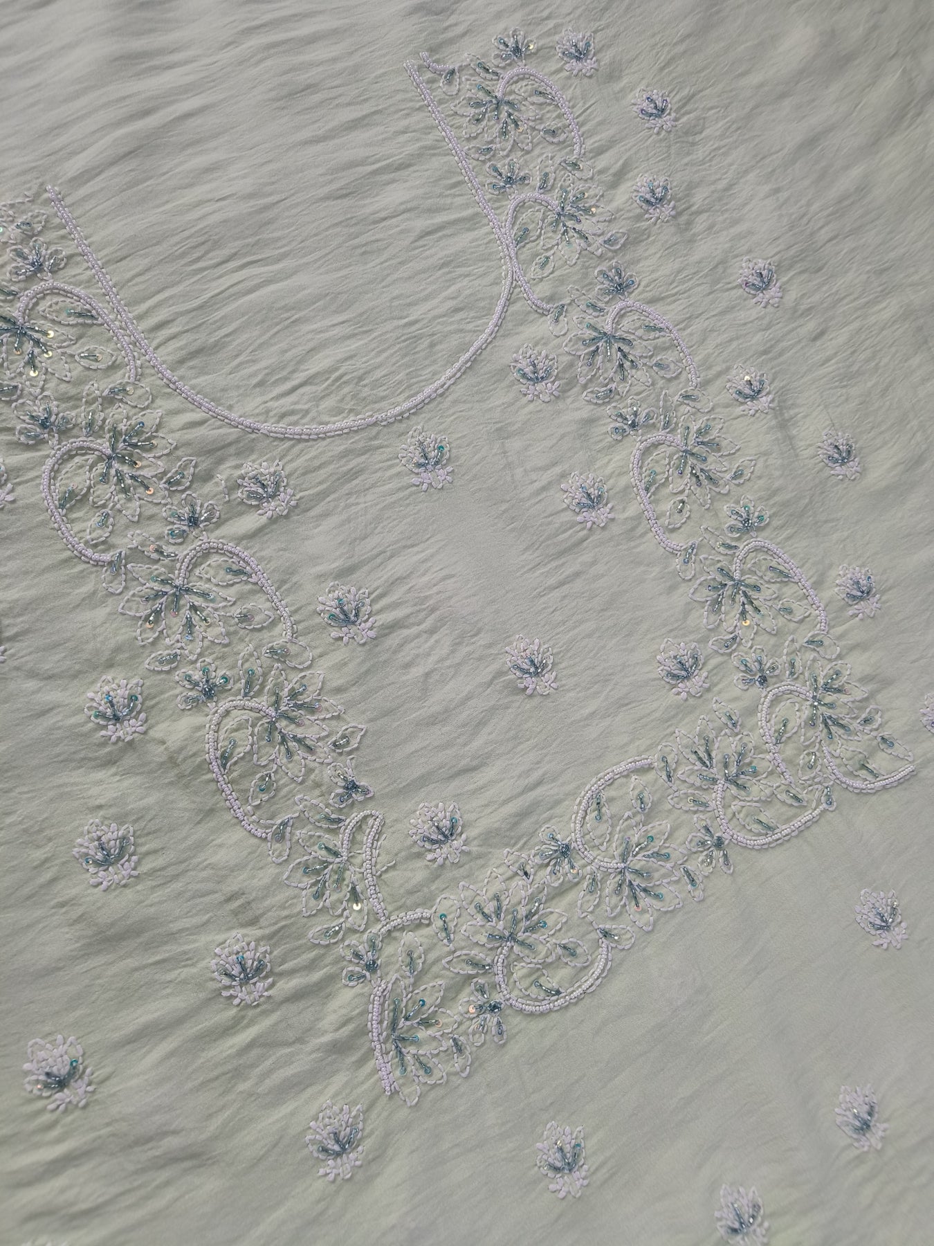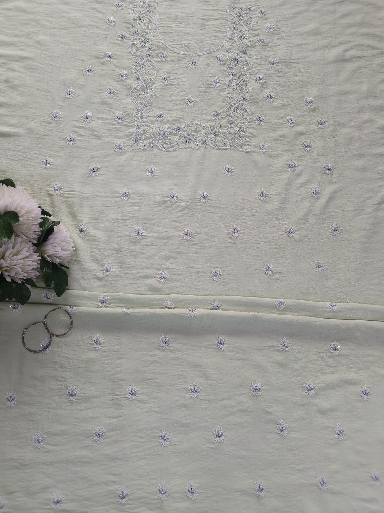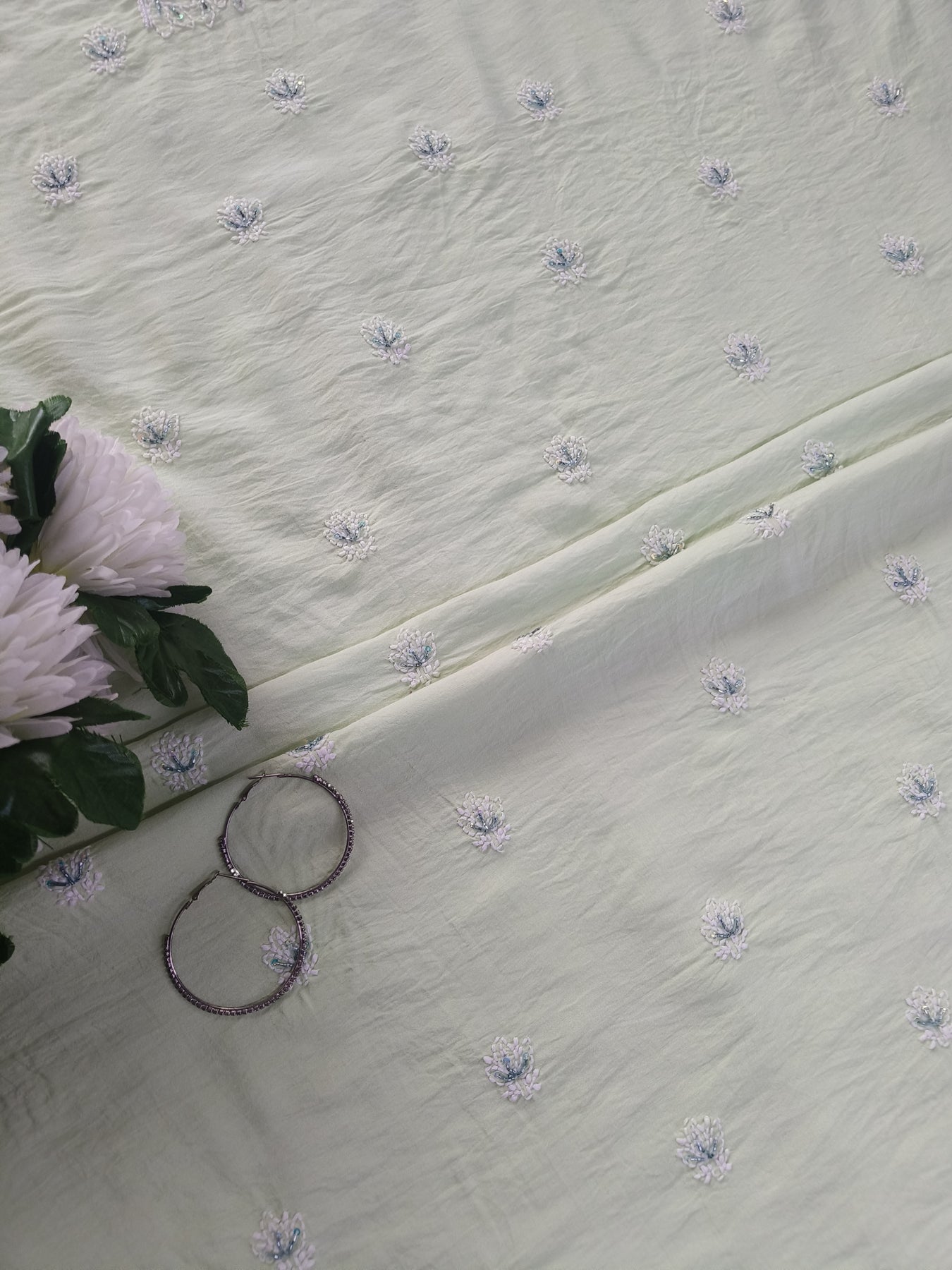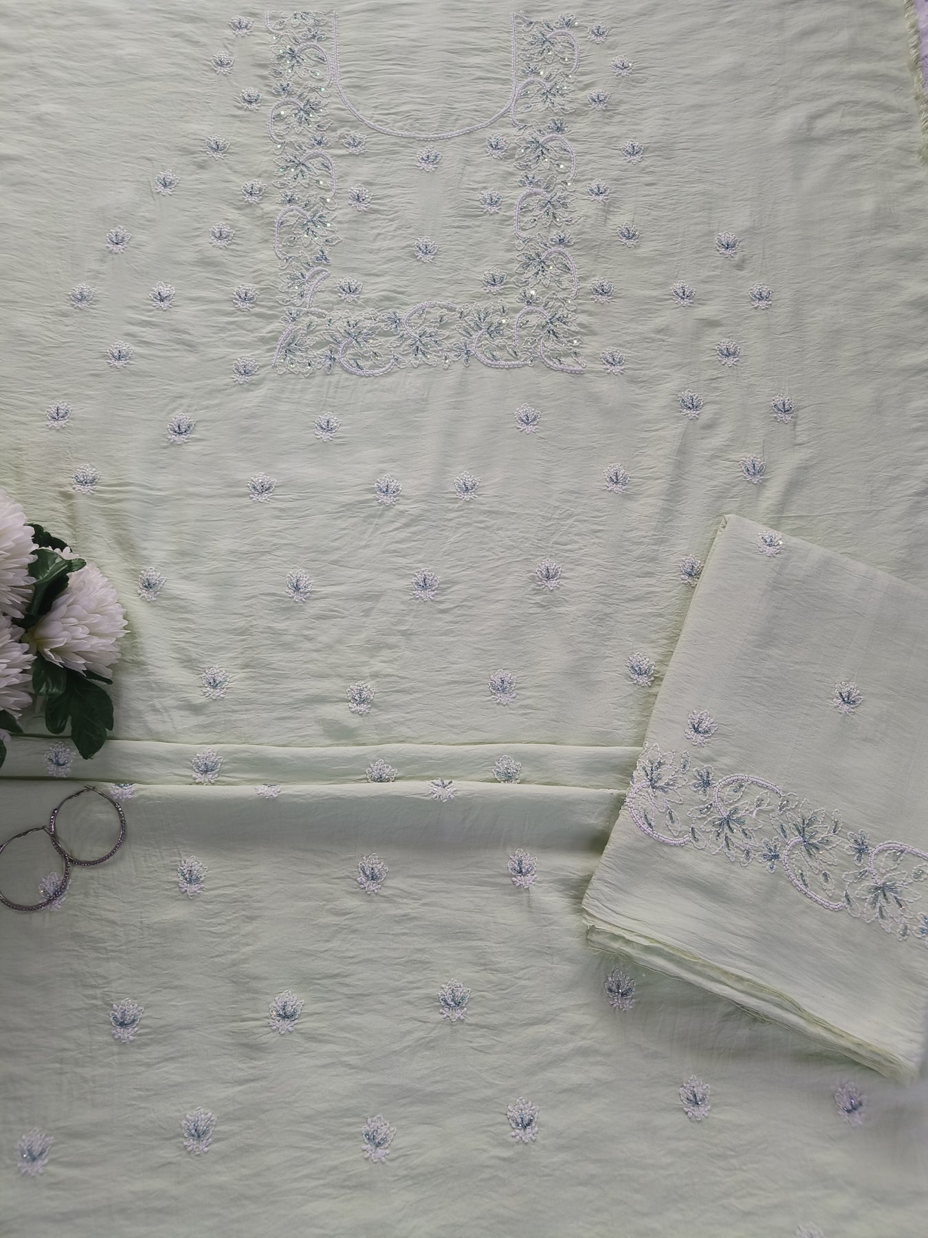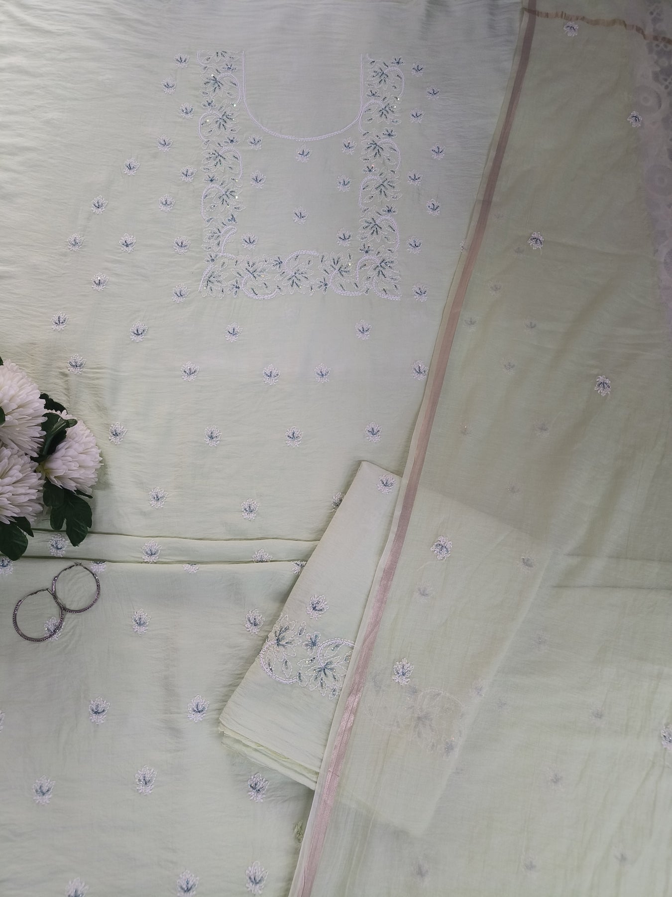Light Pista Green Chanderi Chikankari Suit Fabric
