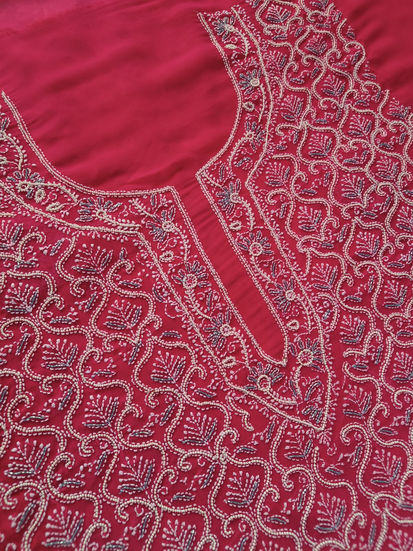 Rani Pink Georgette Chikankari kurta Dupatta Fabric