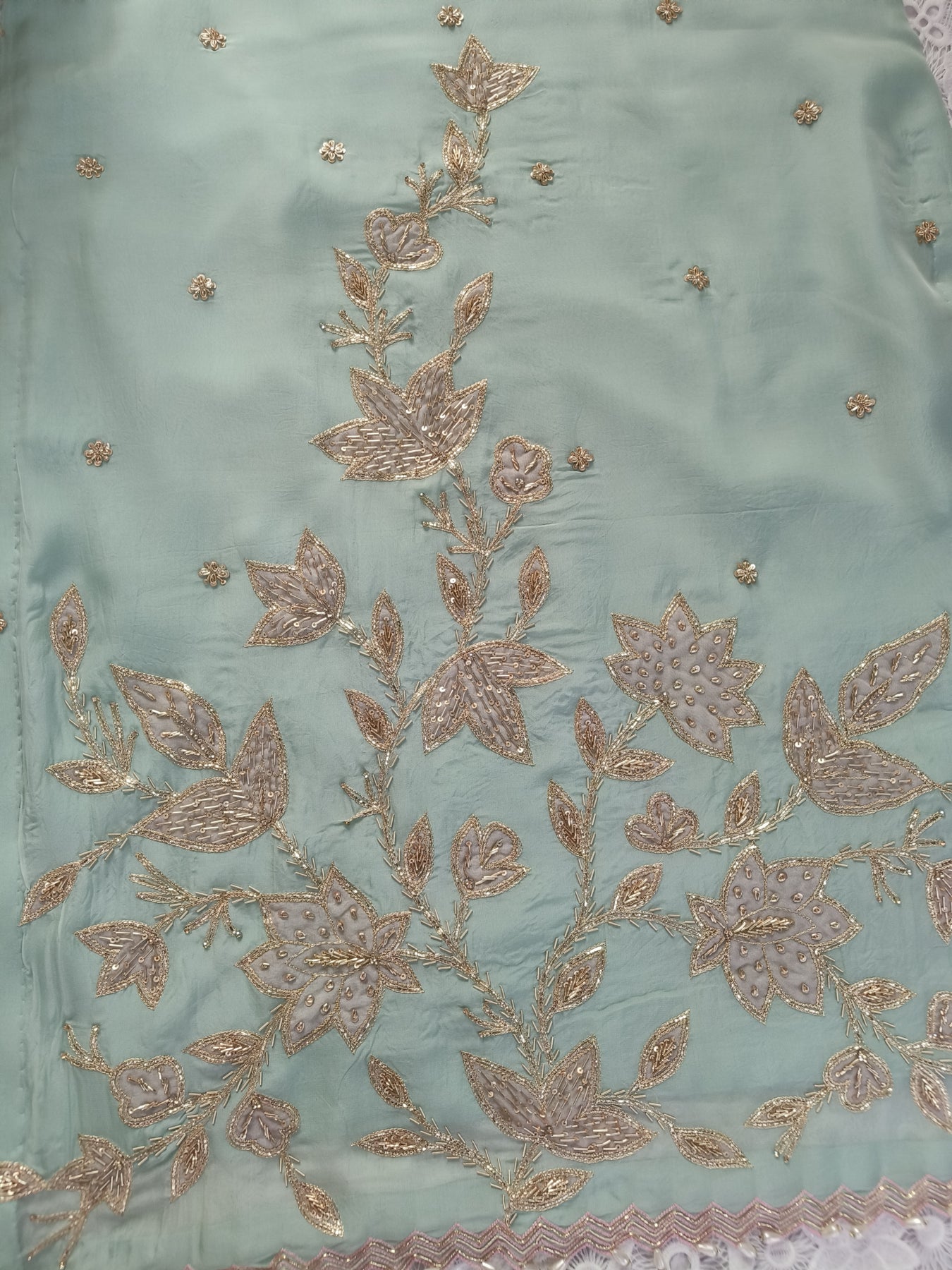 Sea Green Hand Embroidered Suit Set-Custom Made