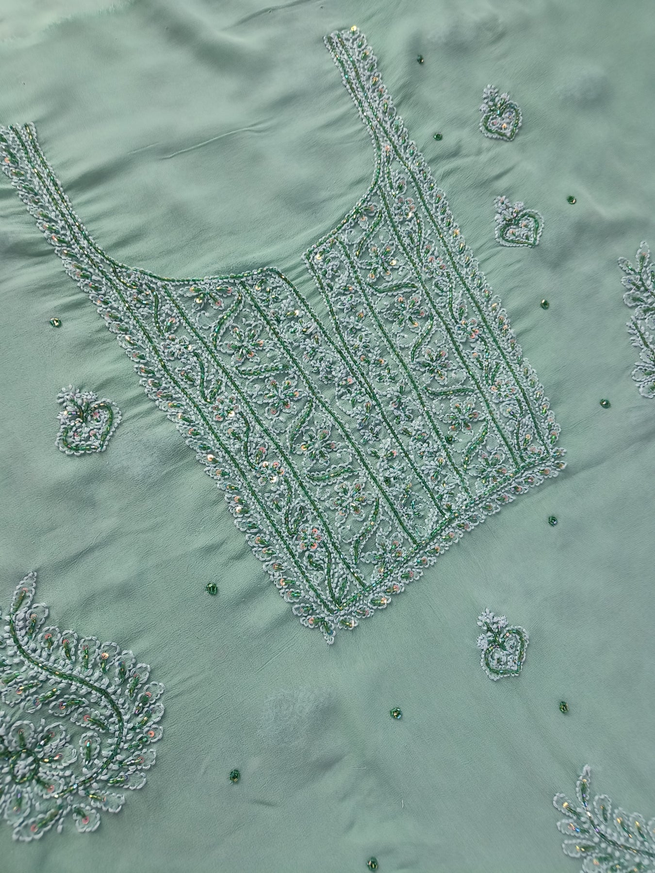 Sea Green Pure Georgette Chikankari Kurta Dupatta Fabric
