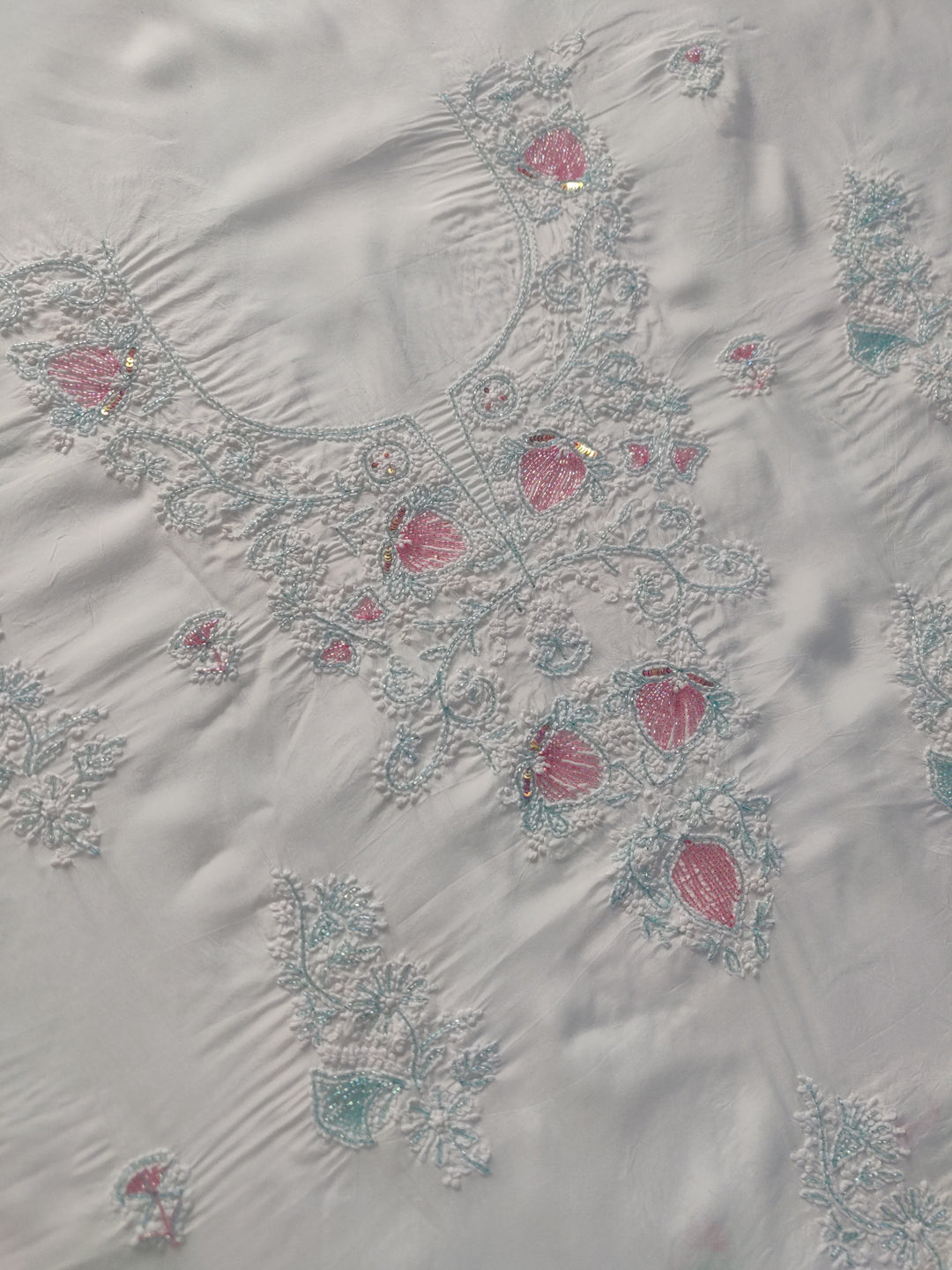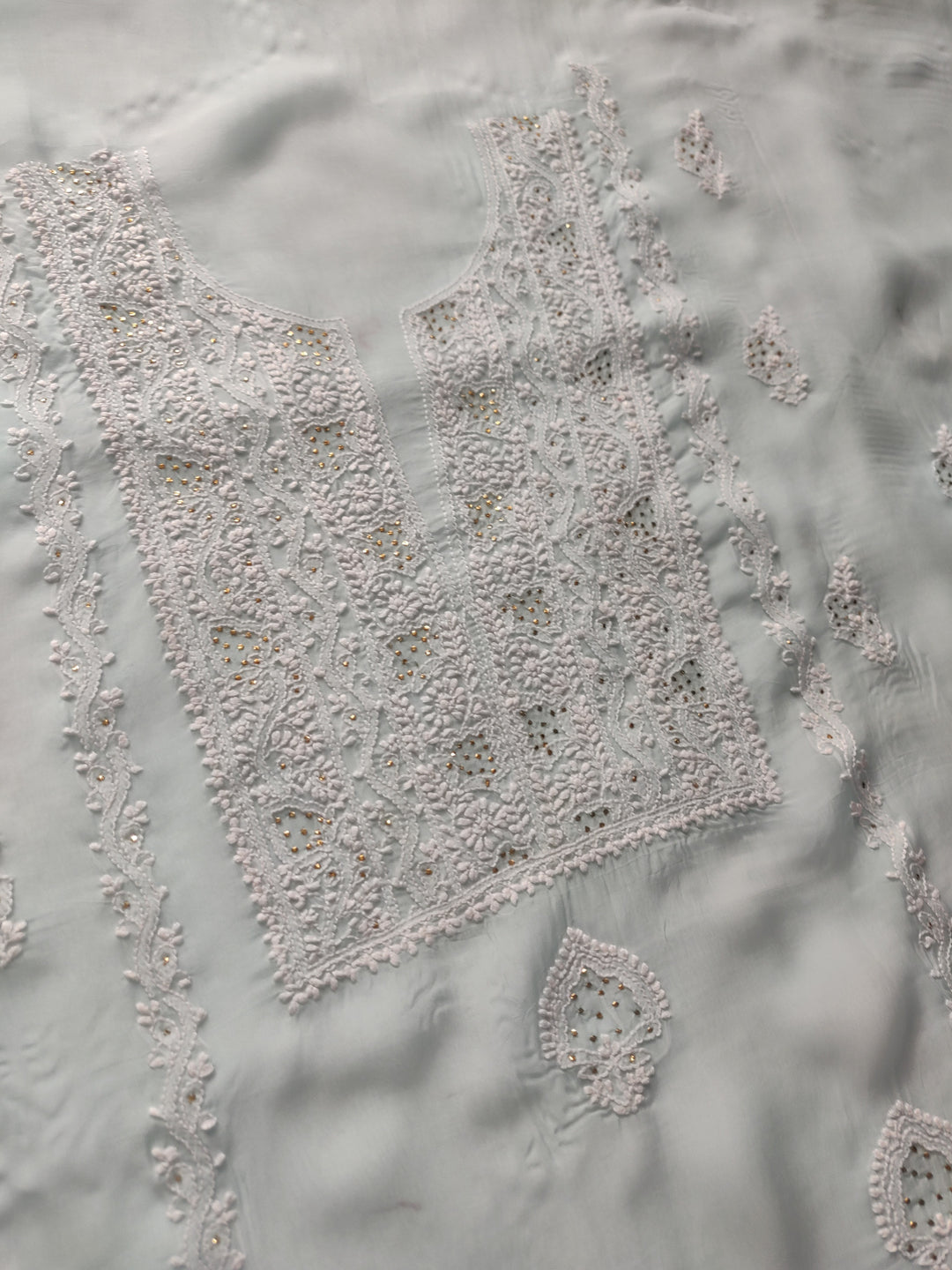 Light Sky Blue Pure Georgette Chikankari kurta Dupatta Fabric