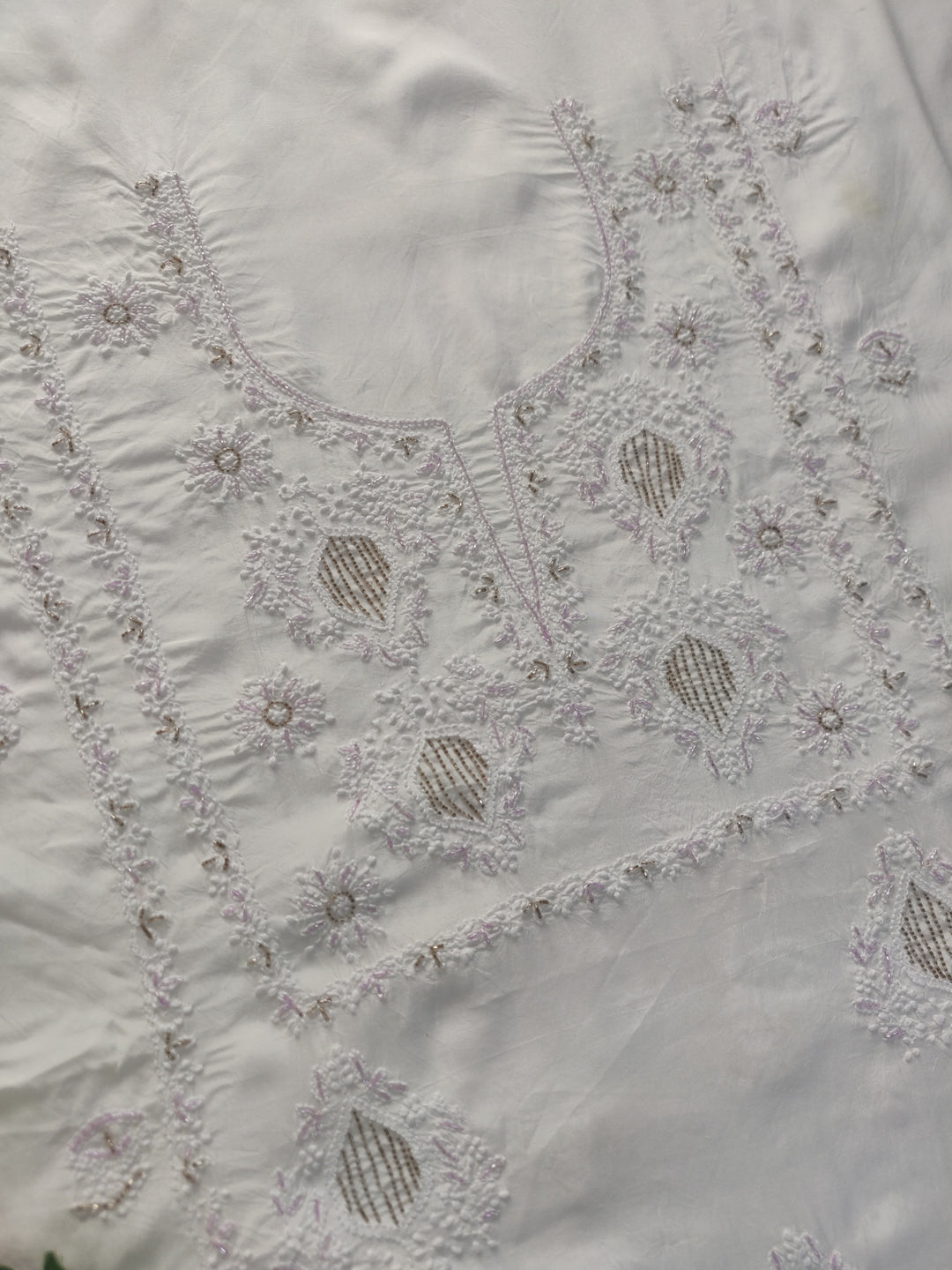 Off White Chanderi Chikankari Suit Set -Custom Made