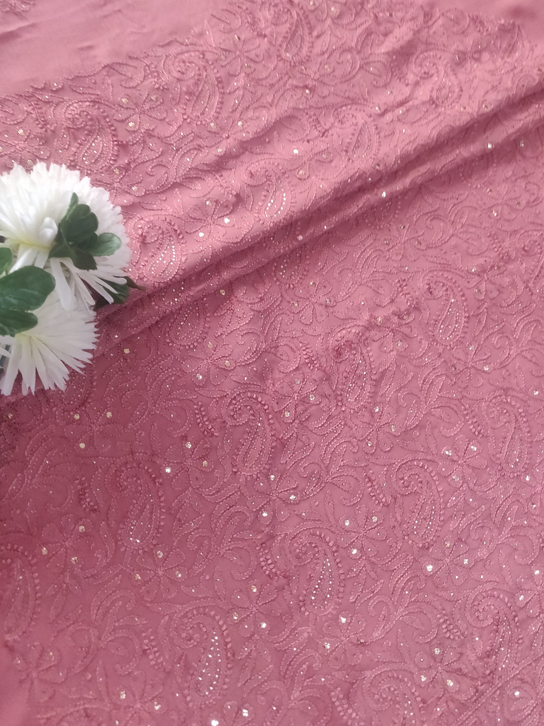 Brown Pure Georgette Chikankari kurta Dupatta Fabric