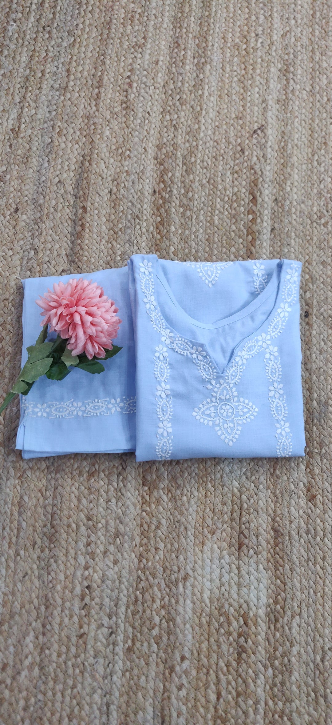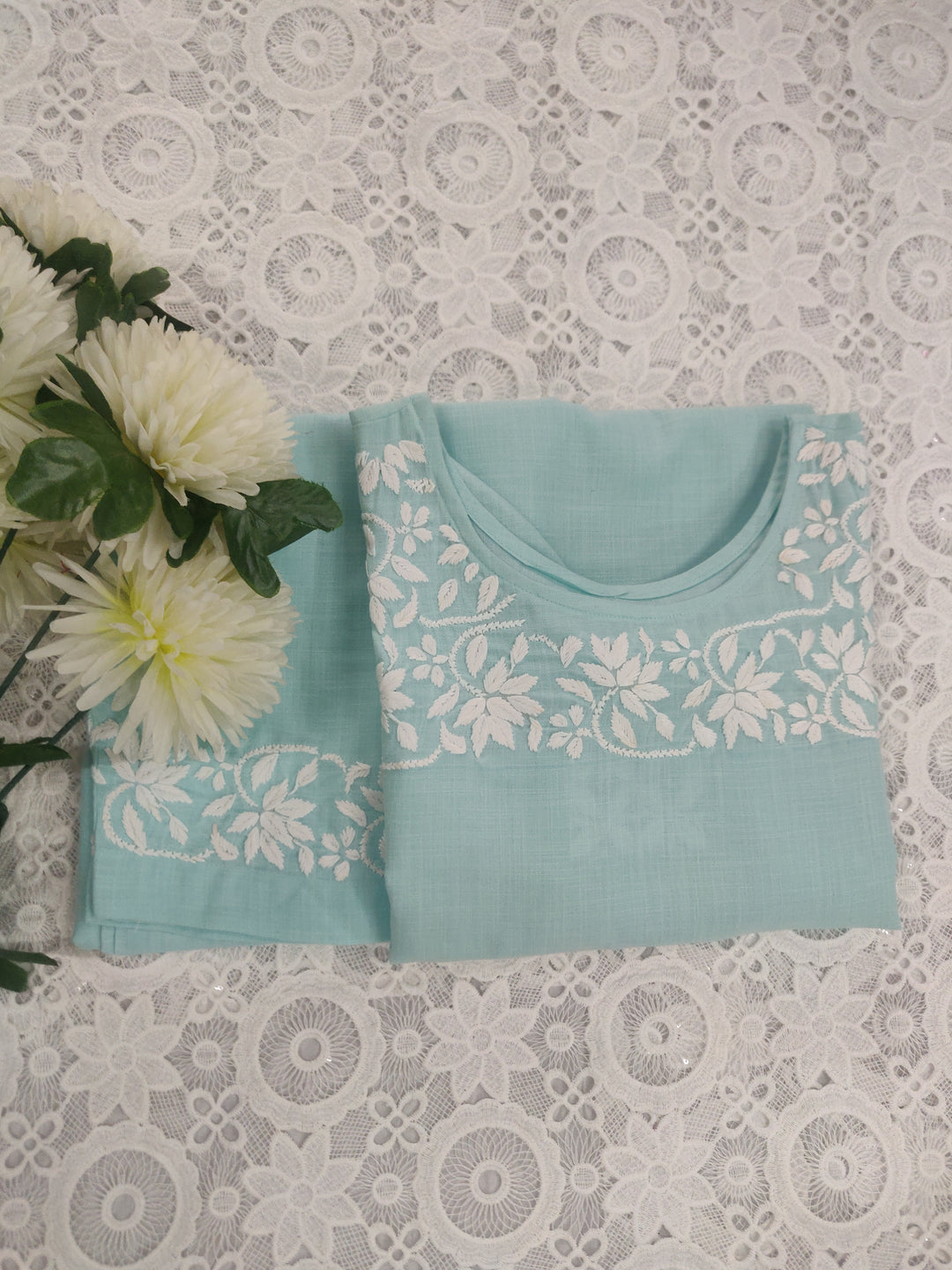 Linen Cotton Light Sky Blue Chikankari CO-ORD Set