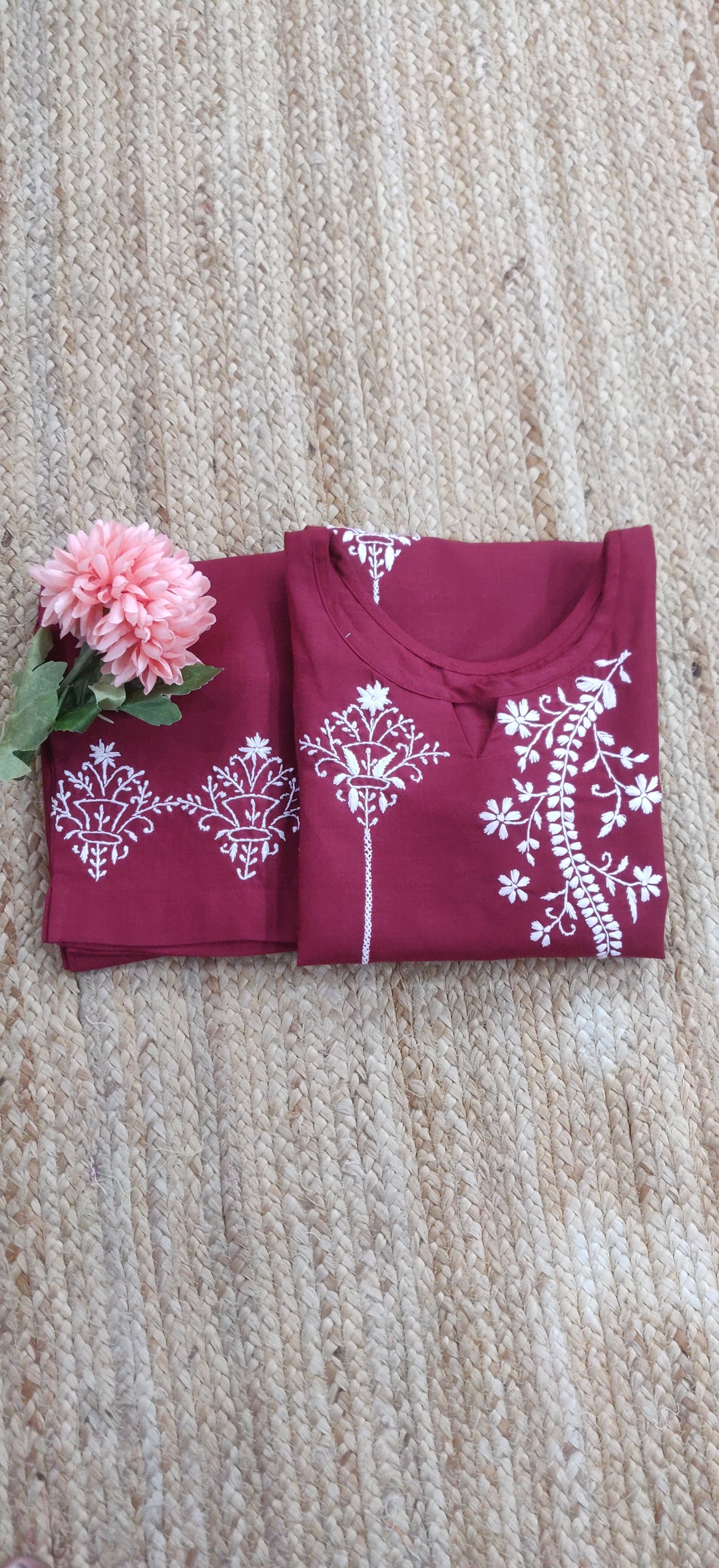 Linen Cotton Dark Green Chikankari Co-ord Set