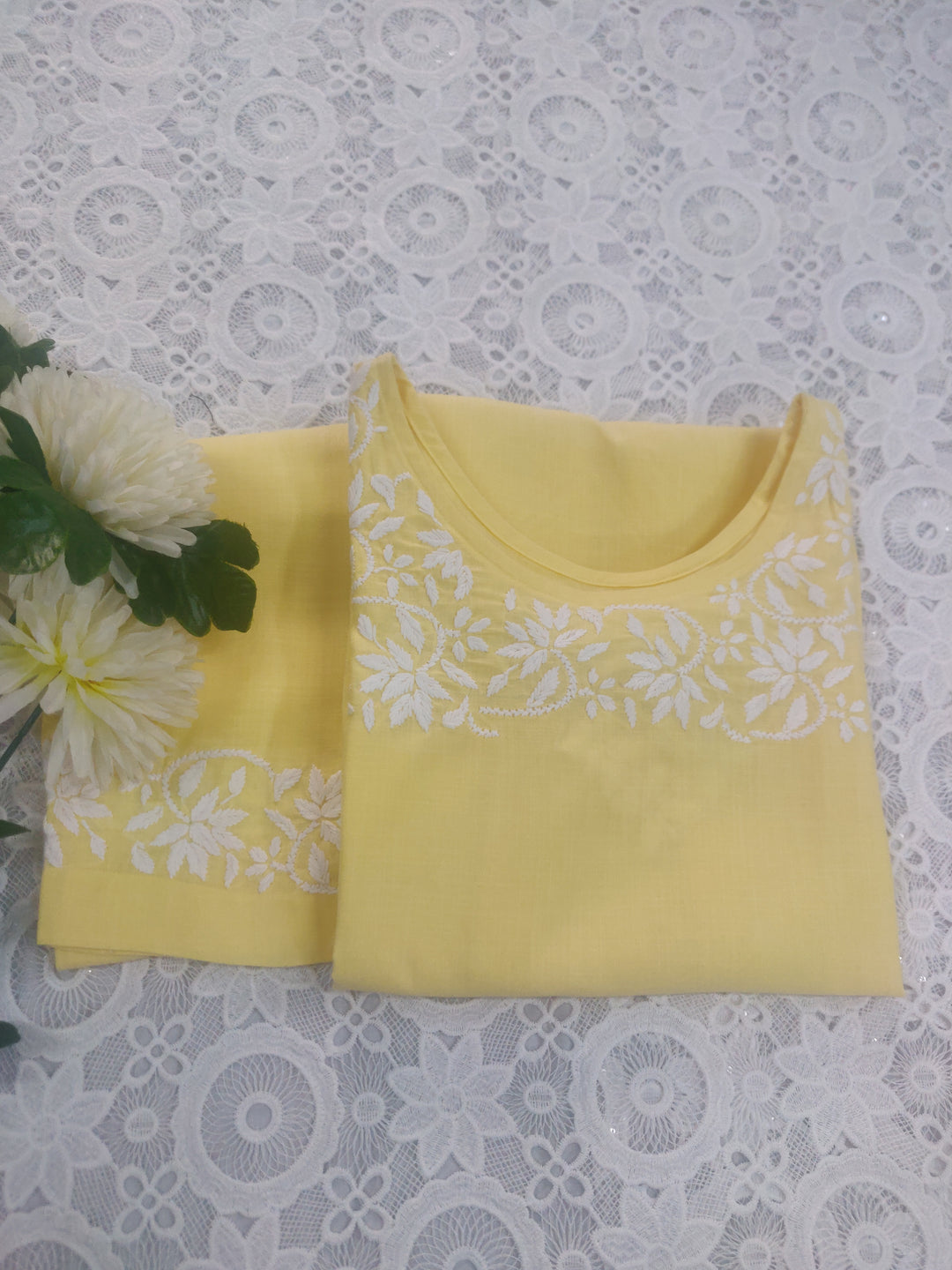 Linen Cotton Light Yellow Chikankari Co-ord Set