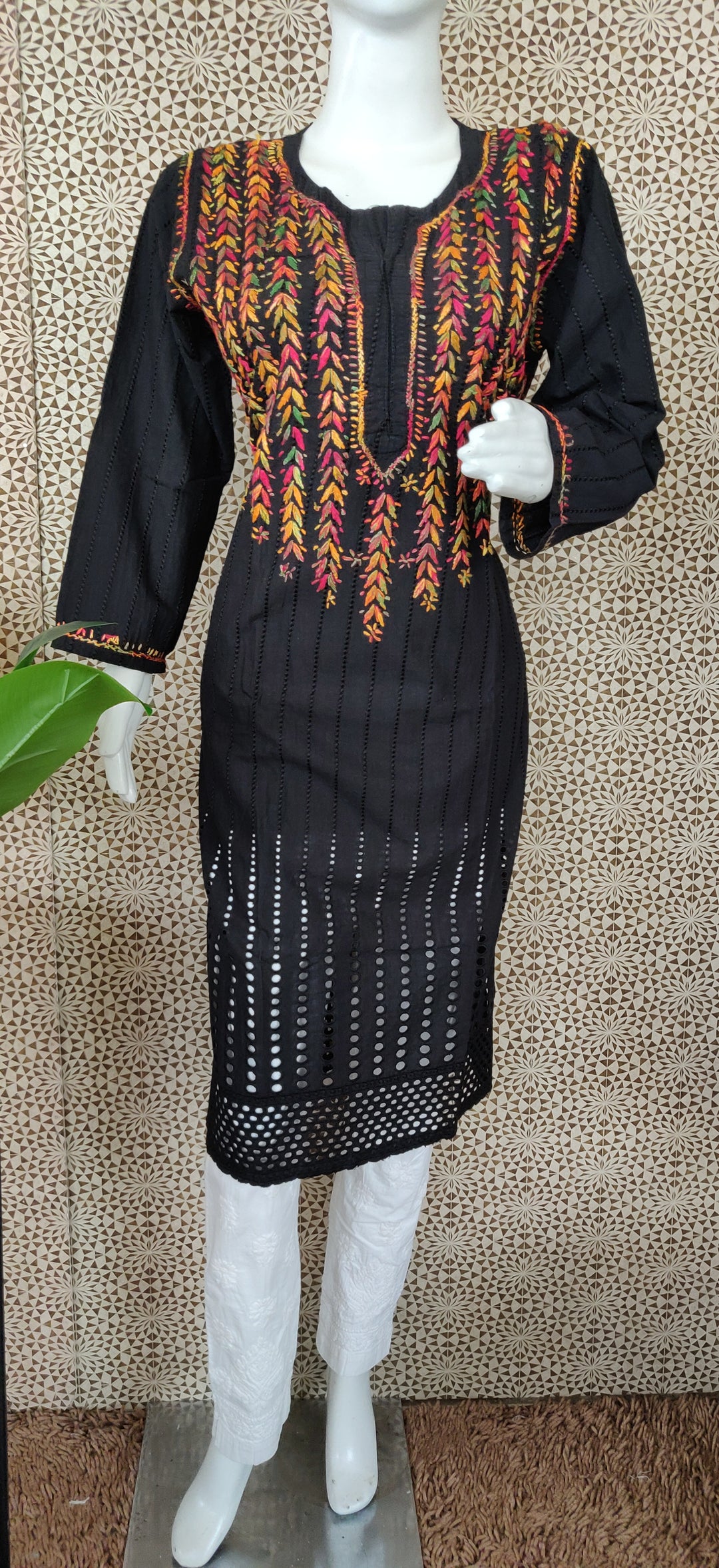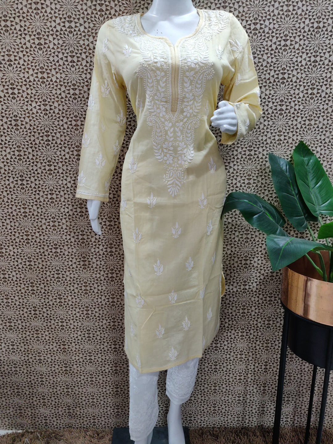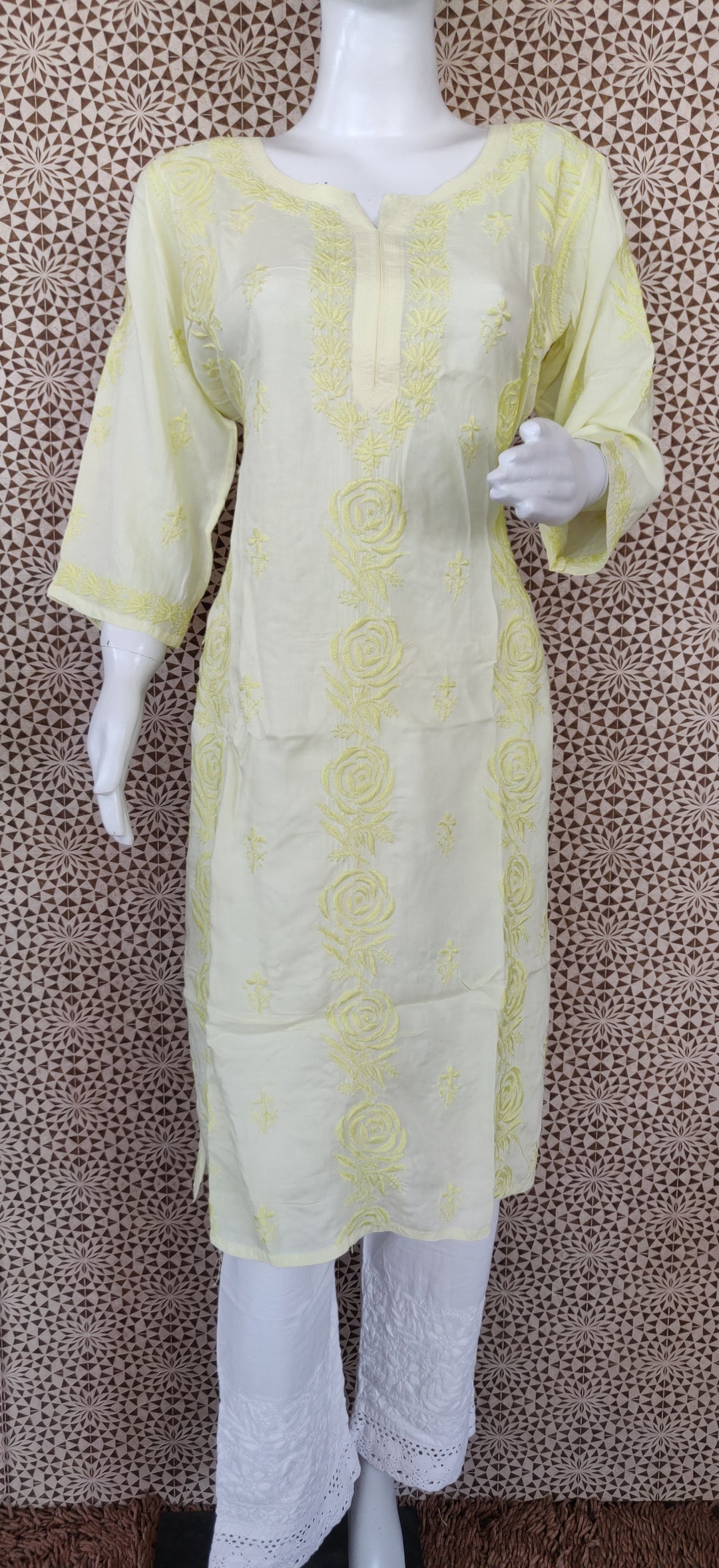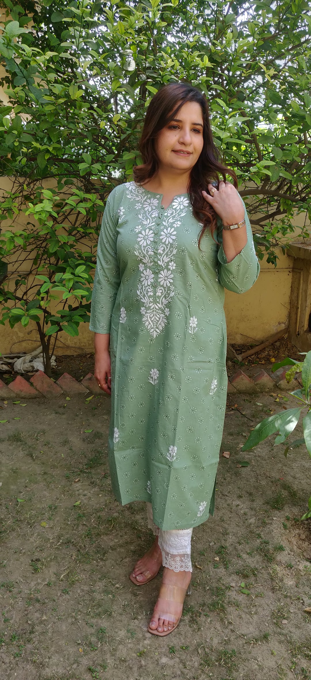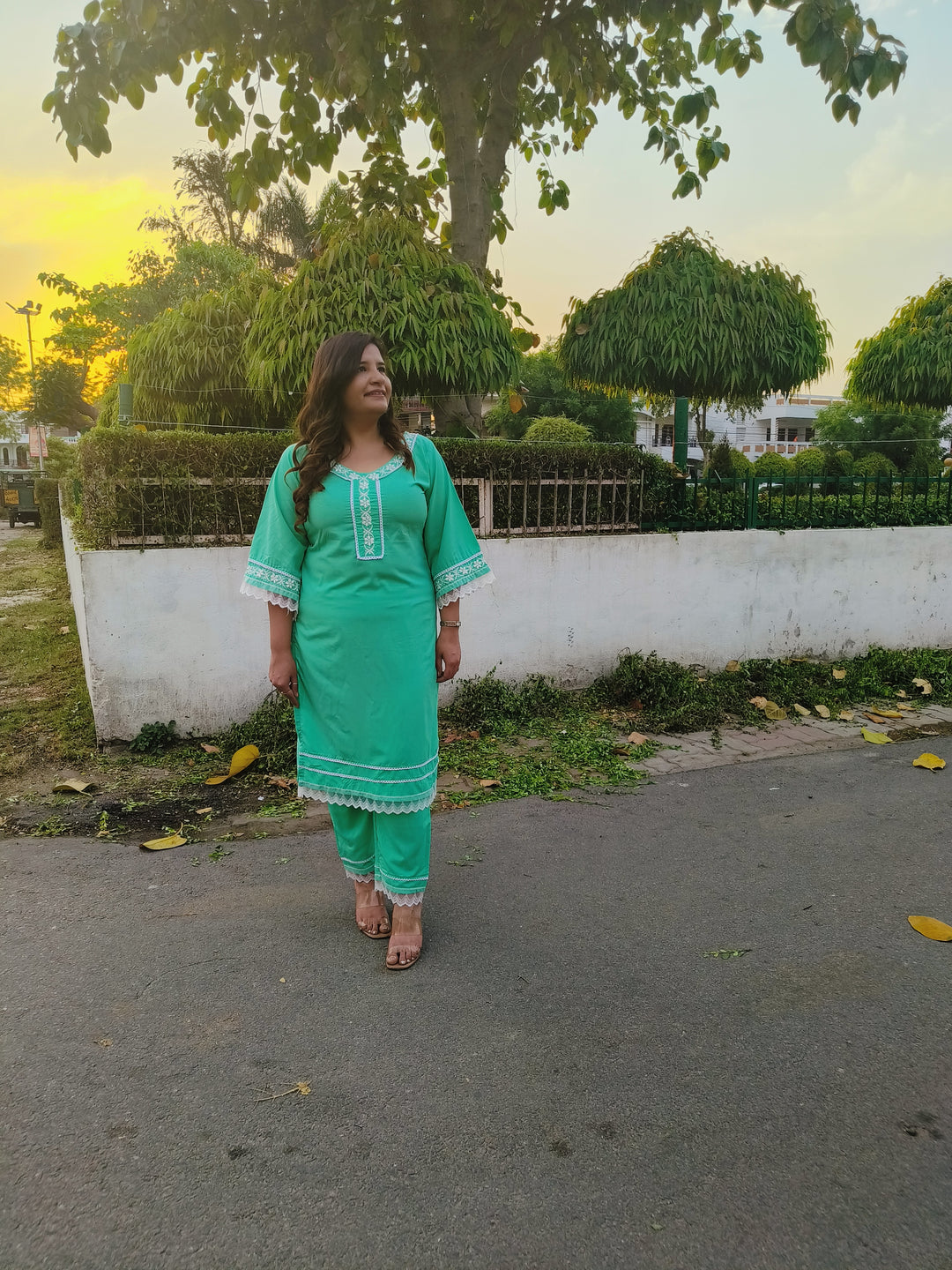 Green Rayon Chikankari A-Line Kurta Pant Set