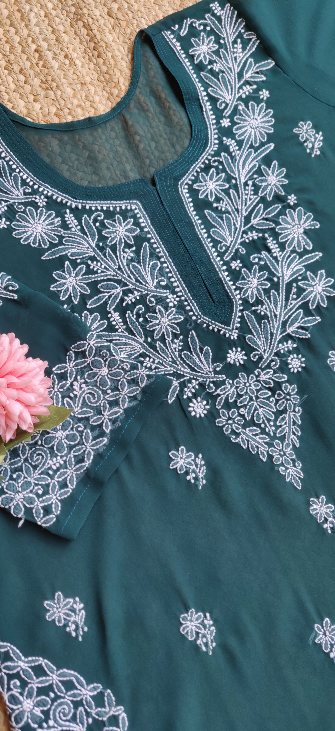 Dark Green Georgette Chikankari Kurta