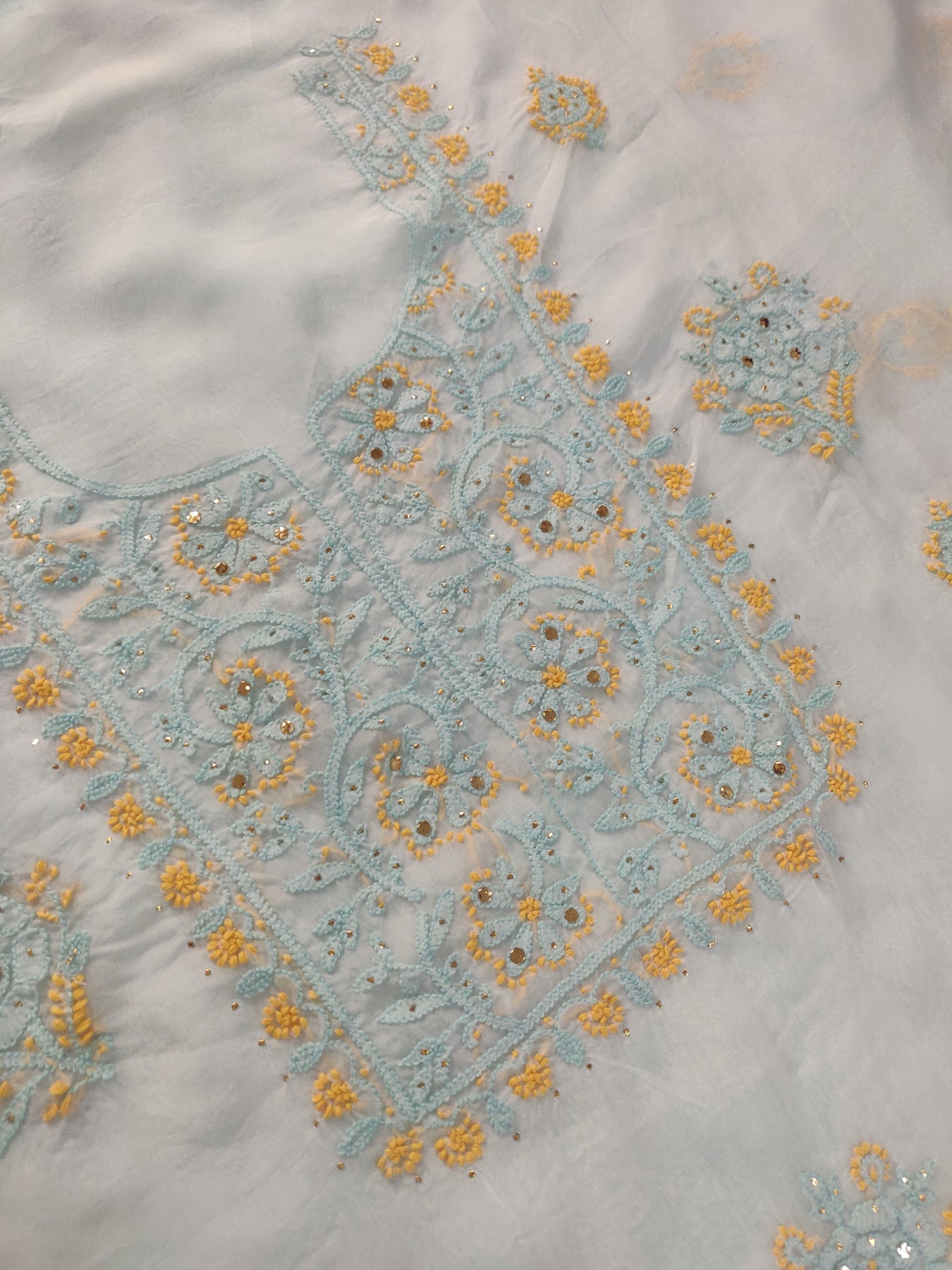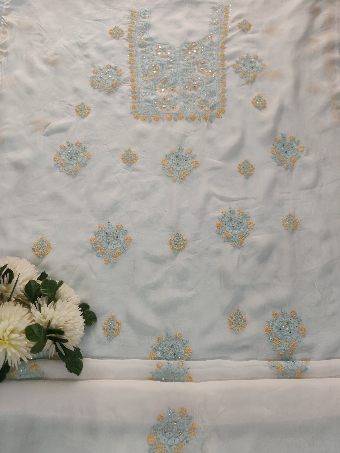 White Organza Chikankari Kurta Dupatta Fabric