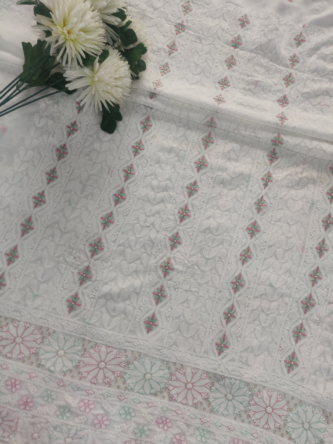 White Pure Georgette Chikankari kurta Dupatta Fabric