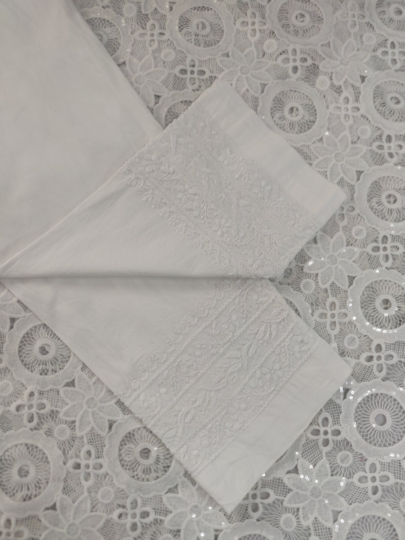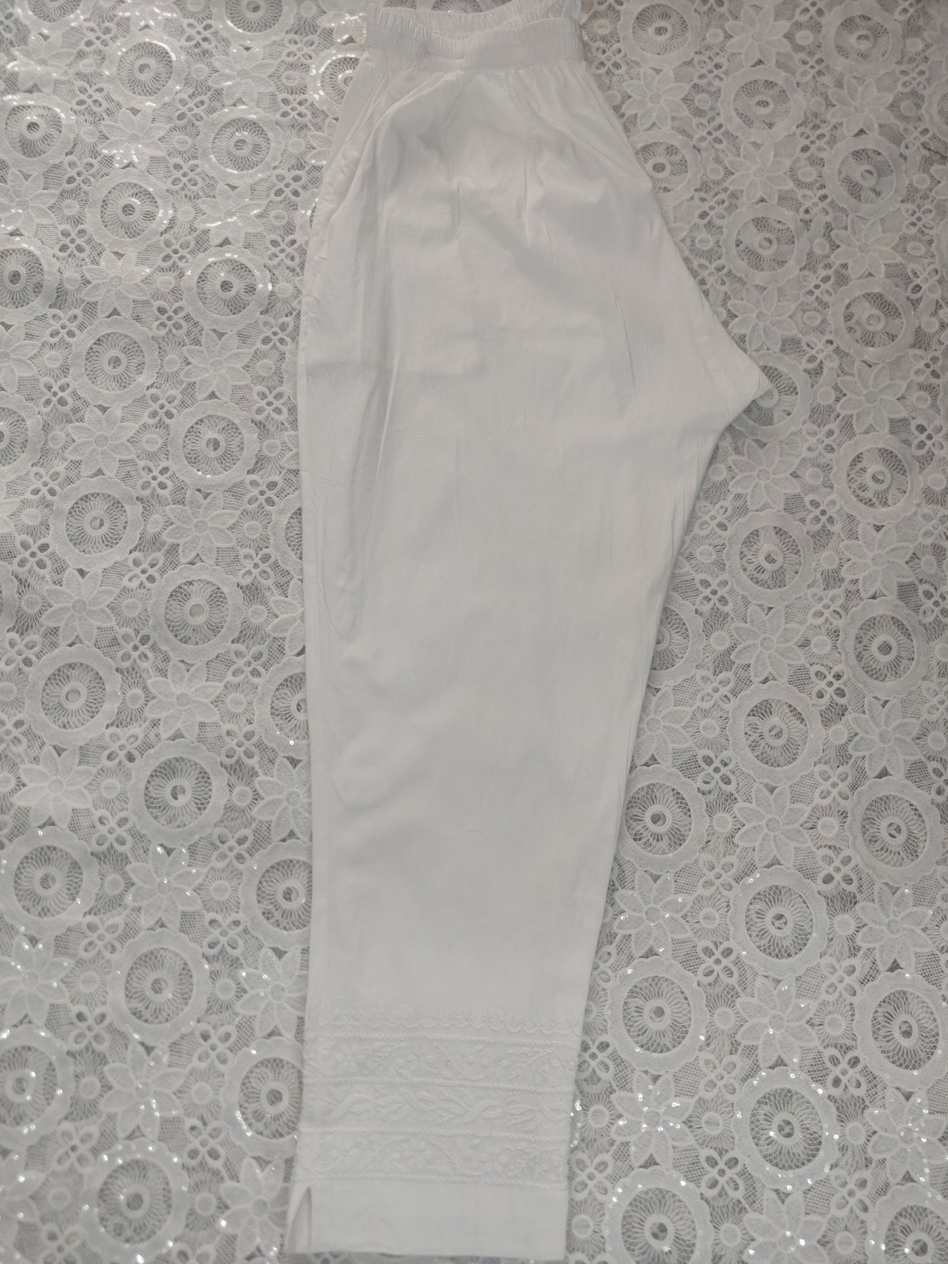 White Stretchable Cotton Chikankari Pant-Custom Made