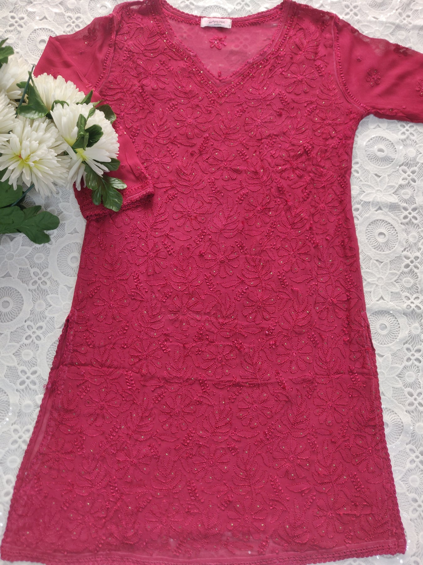 Maroon Pure Georgette Chikankari Short kurta
