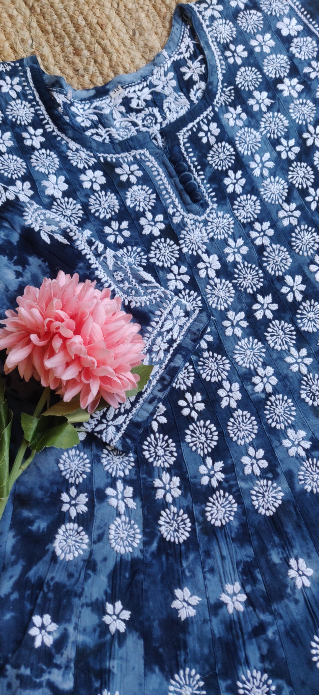 Blue and Grey Printed Reyon Chikankari Anarkali