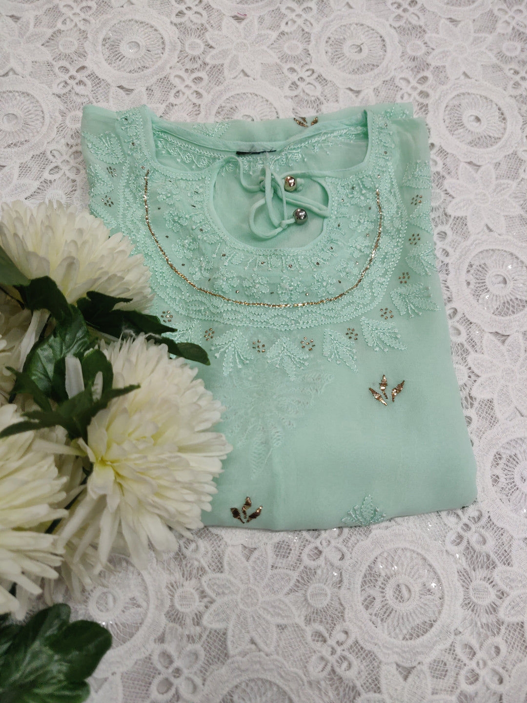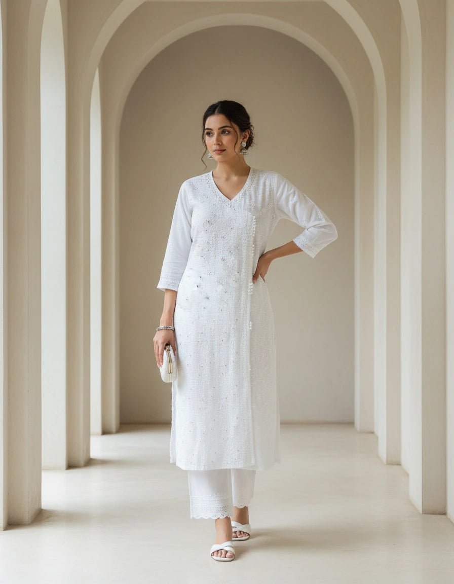 Linen Cotton Light Sky Blue Chikankari CO-ORD Set