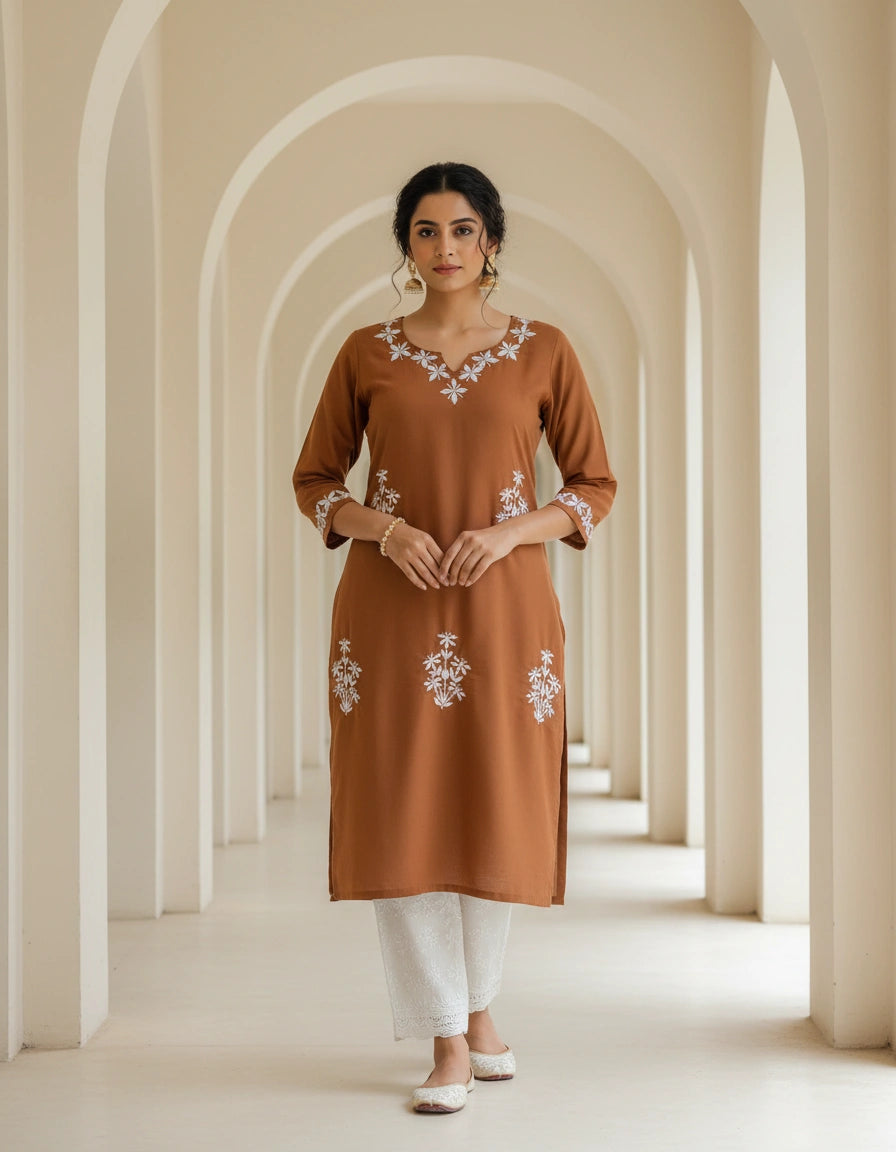 Rust Modal Chikankari Short kurta