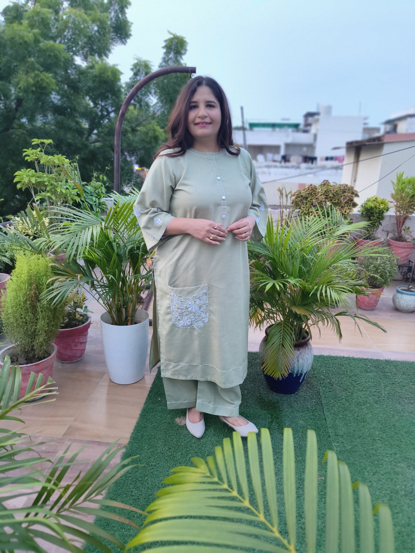 Linen Light Green Chikankari Co-ord Set-Custom Made