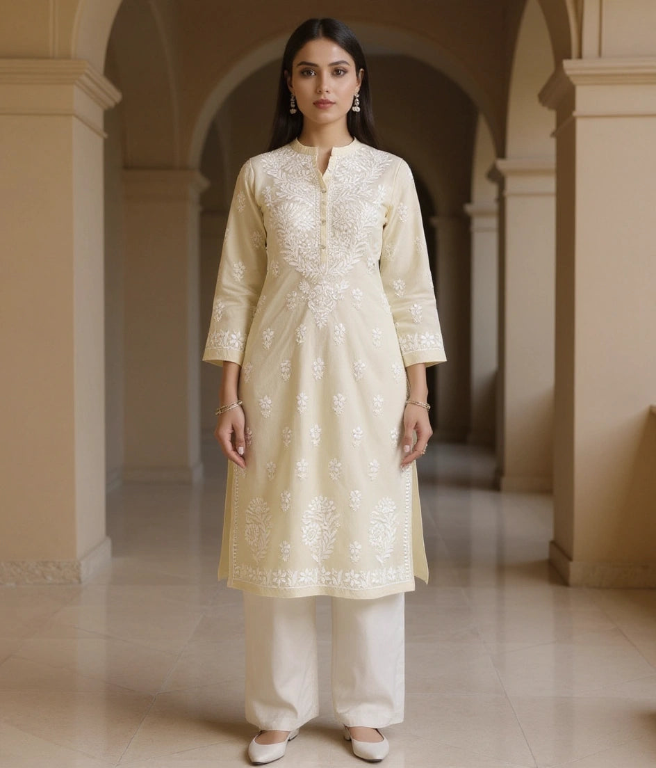 Light Yellow Cotton Chikankari kurta