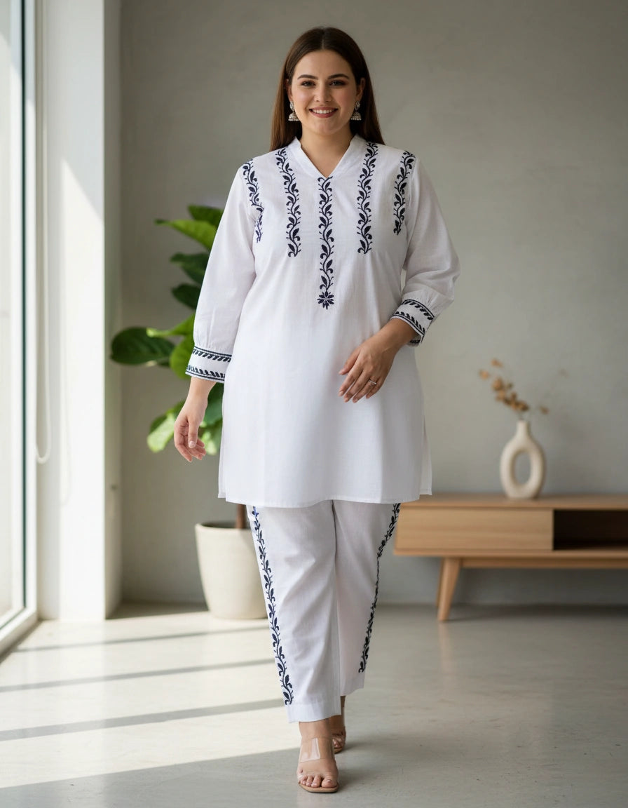 White Chanderi Chikankari Kurta With Pant Set -Custom Made